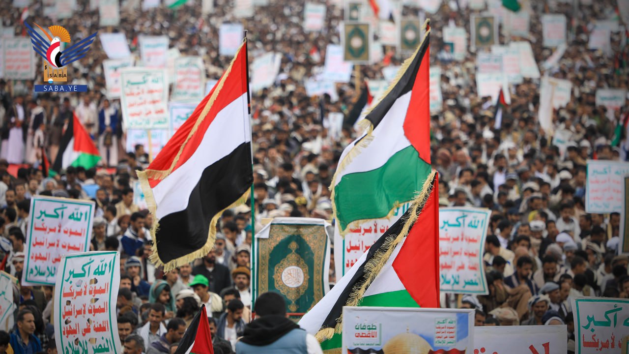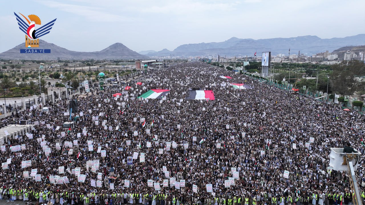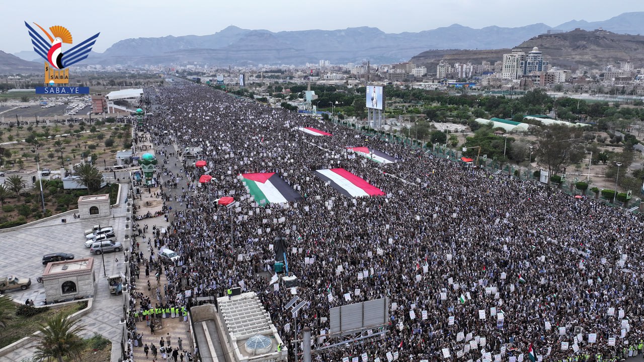 حشود مليونية بالعاصمة صنعاء في مسيرة "لا عزة لشعوب الأمة دون الانتصار لغزة"