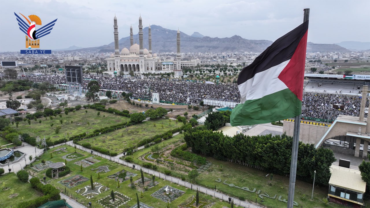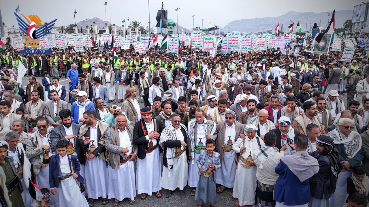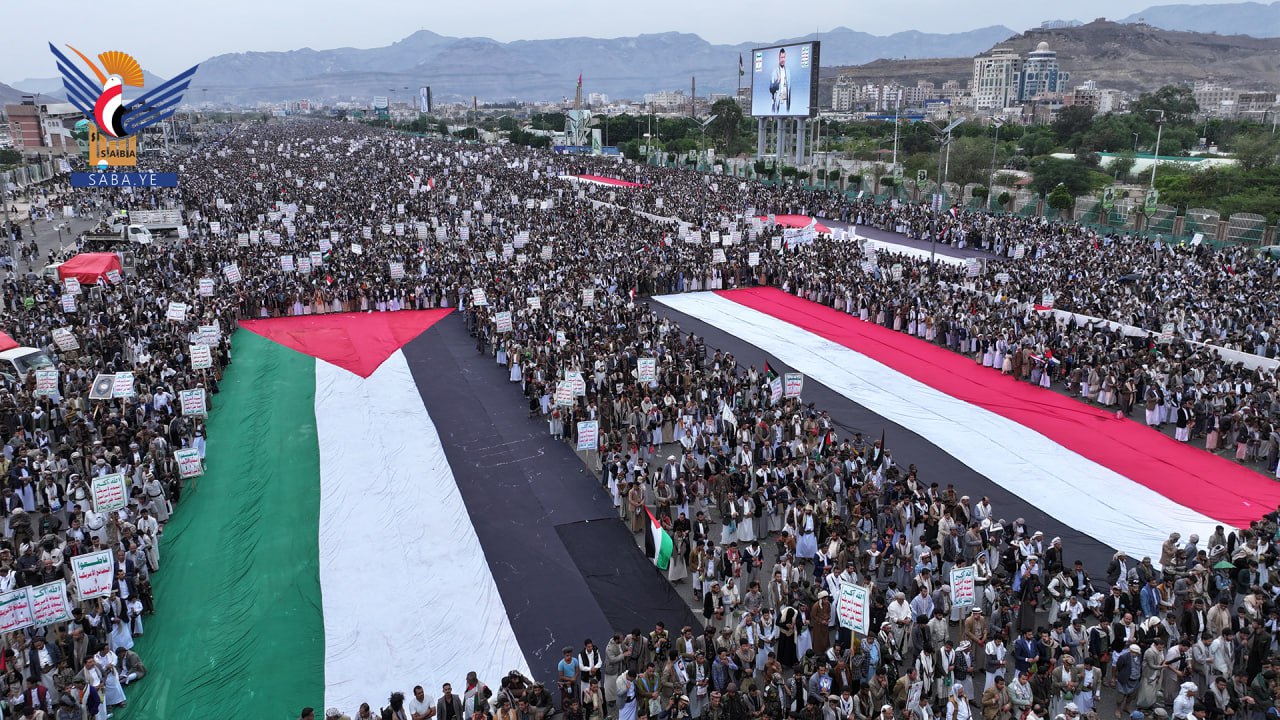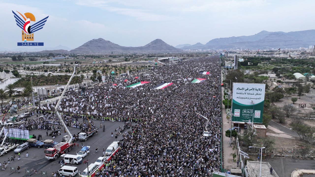 حشود مليونية بالعاصمة صنعاء في مسيرة "لا عزة لشعوب الأمة دون الانتصار لغزة"