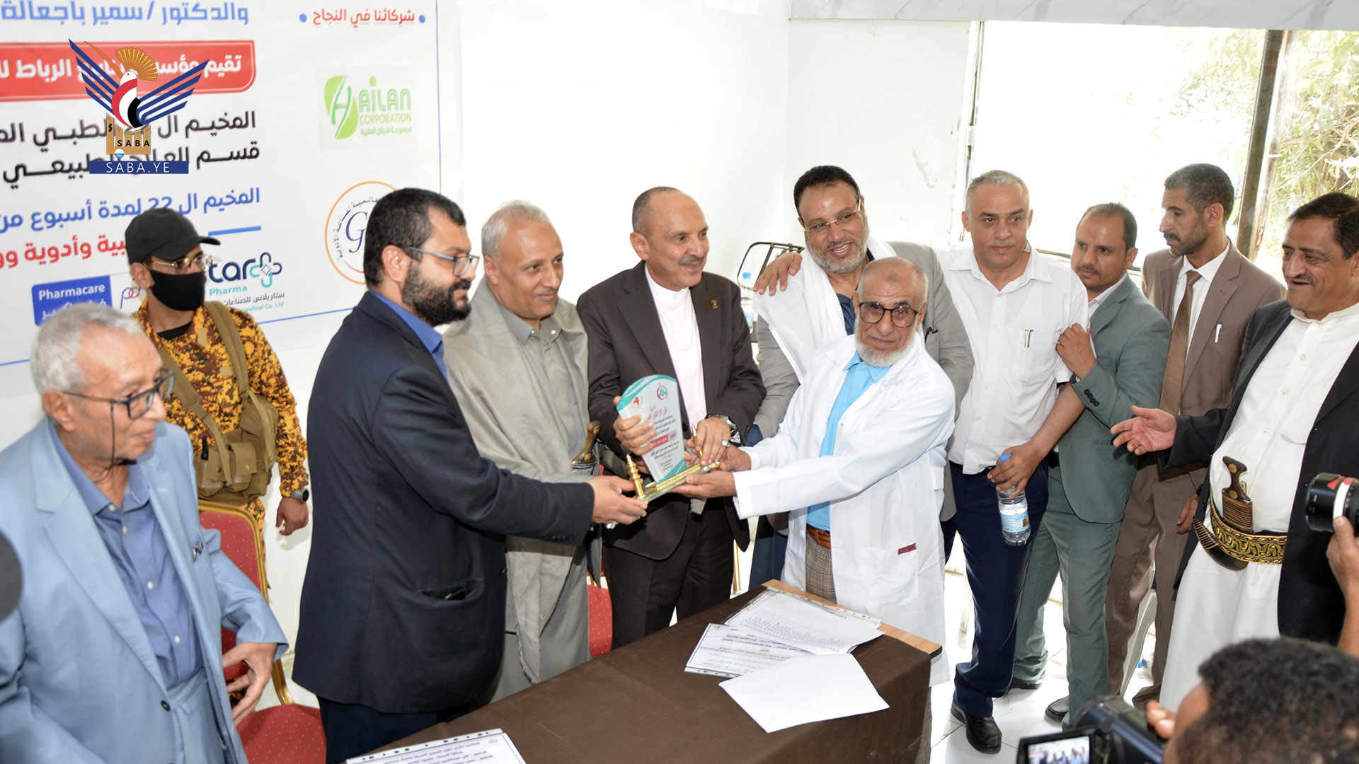 فيما أشار أمين عام مؤسسة الرباط مدير المخيم الطبي الدكتور عبدالعزيز نجم الدين، أن المخيم هو ثمرة العمل الخيري وجهود القطاع الخاص، مستعرضا التخصصات والفحوصات الطبية التي يقدمها المخيم، والذي يأتي بالتزامن مع الاحتفاء بذكرى المولد النبوي الشريف على صاحبه وآله أفضل الصلاة والسلام وأعياد الثورة اليمنية.