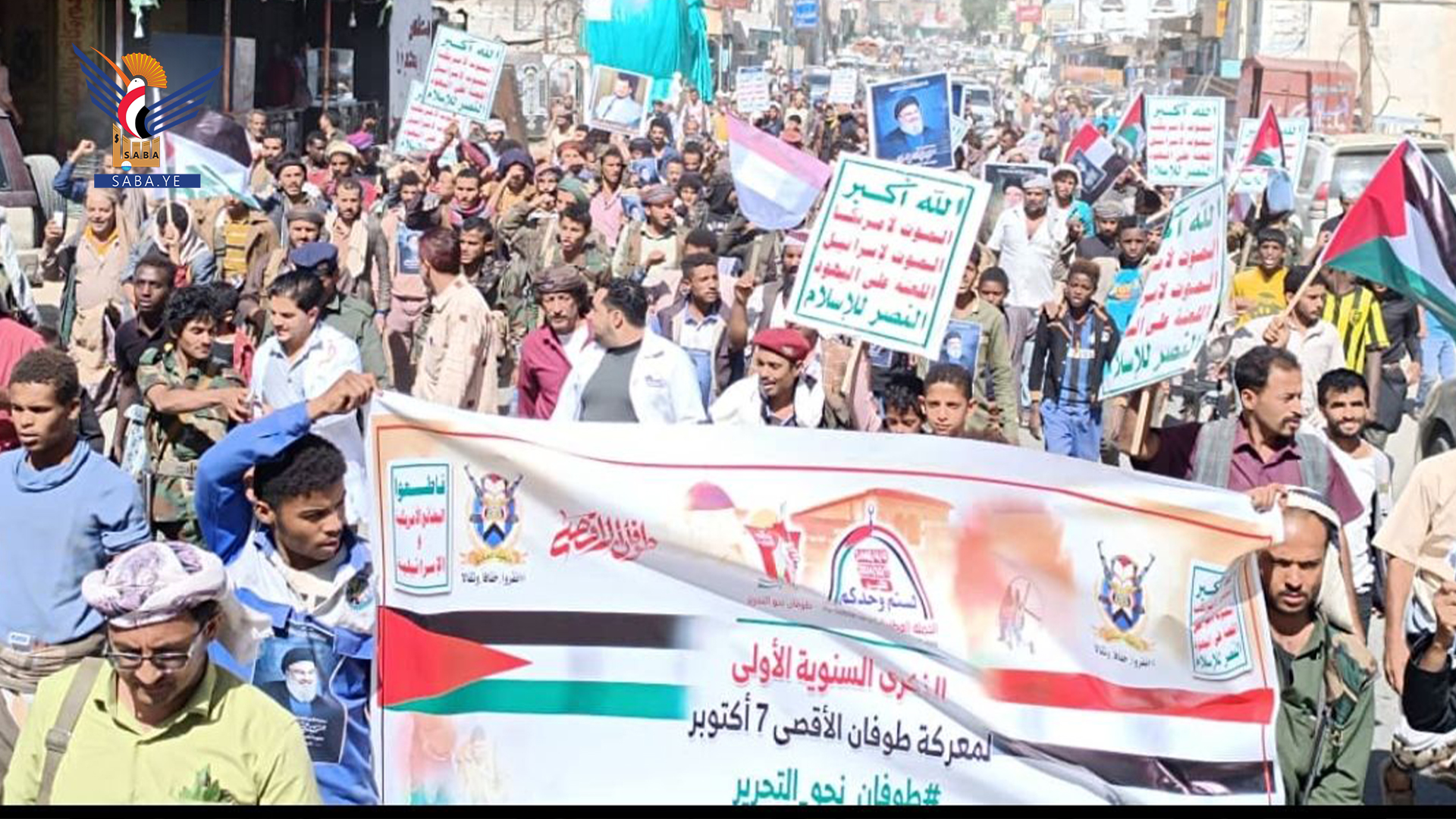 مسيرات ووقفات حاشدة بالبيضاء بمناسبة الذكرى الاولى لطوفان الاقصى
