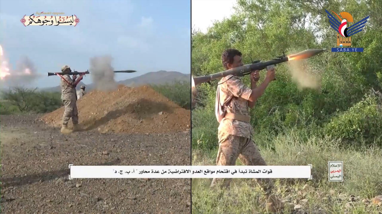 وتزامنا مع عمليات القصف اقتحمت قوة المشاة من قوات التعبئة العامة مواقع العدو في المناطق الجبلية والصحراوية من عدة محاور وفق خطط تكتيكية عسكرية، تحت قيادة غرفة العمليات المزودة بتجهيزات أجهزة المراقبة ورصد الأهداف والتحكم بمسار العمليات الهجومية للقوات المشاركة في المناورات.
