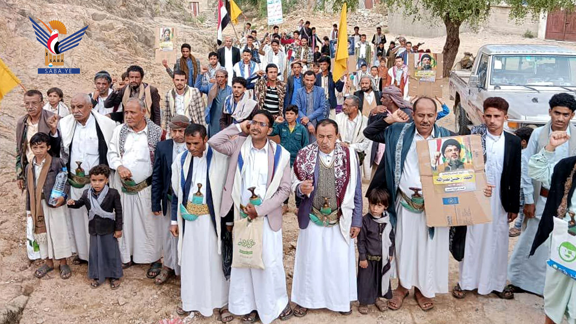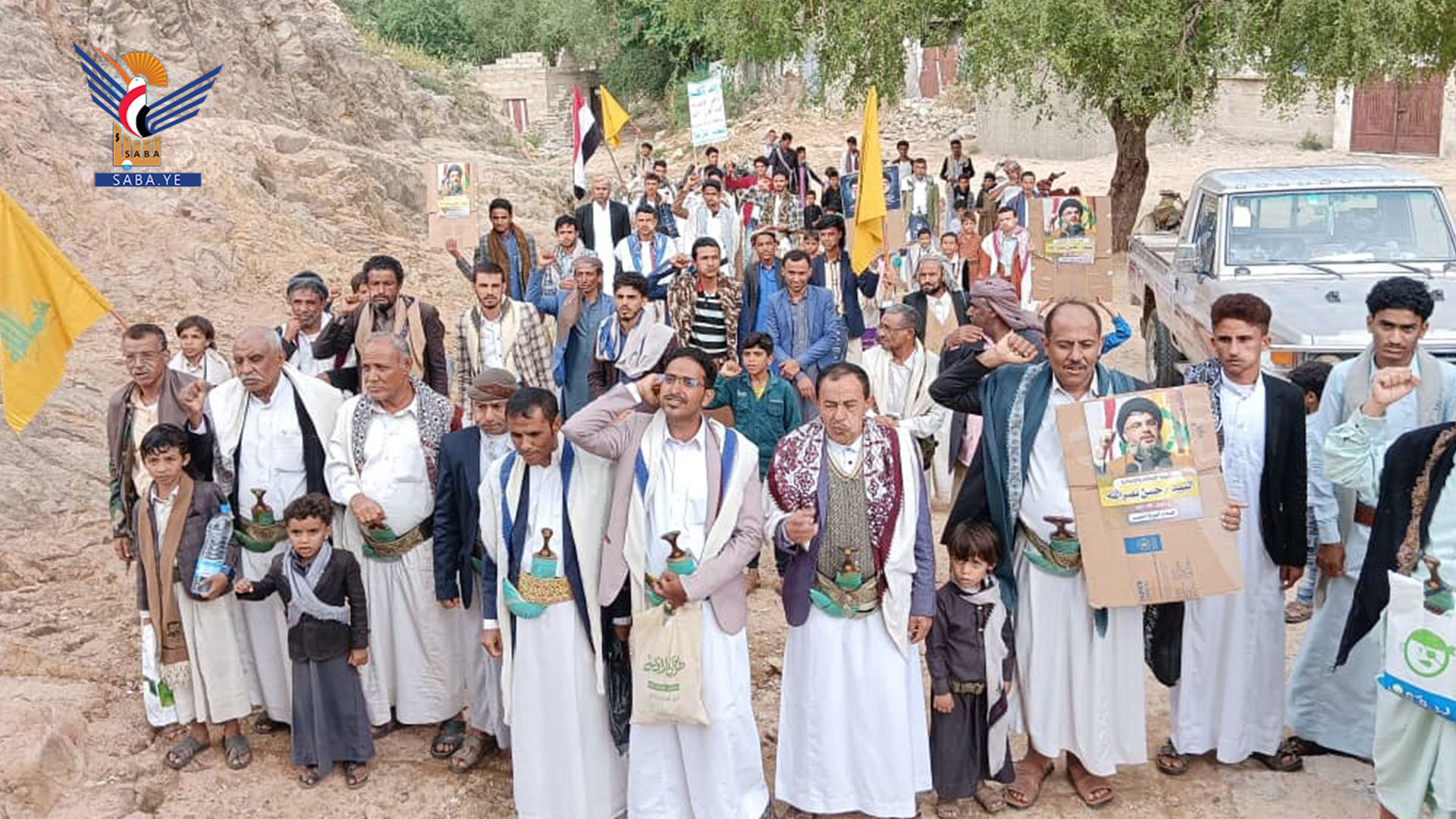 أبناء حجة يحتشدون في 83 مسيرة بعنوان "مع غزة ولبنان.. دماء الشهداء تصنع النصر"