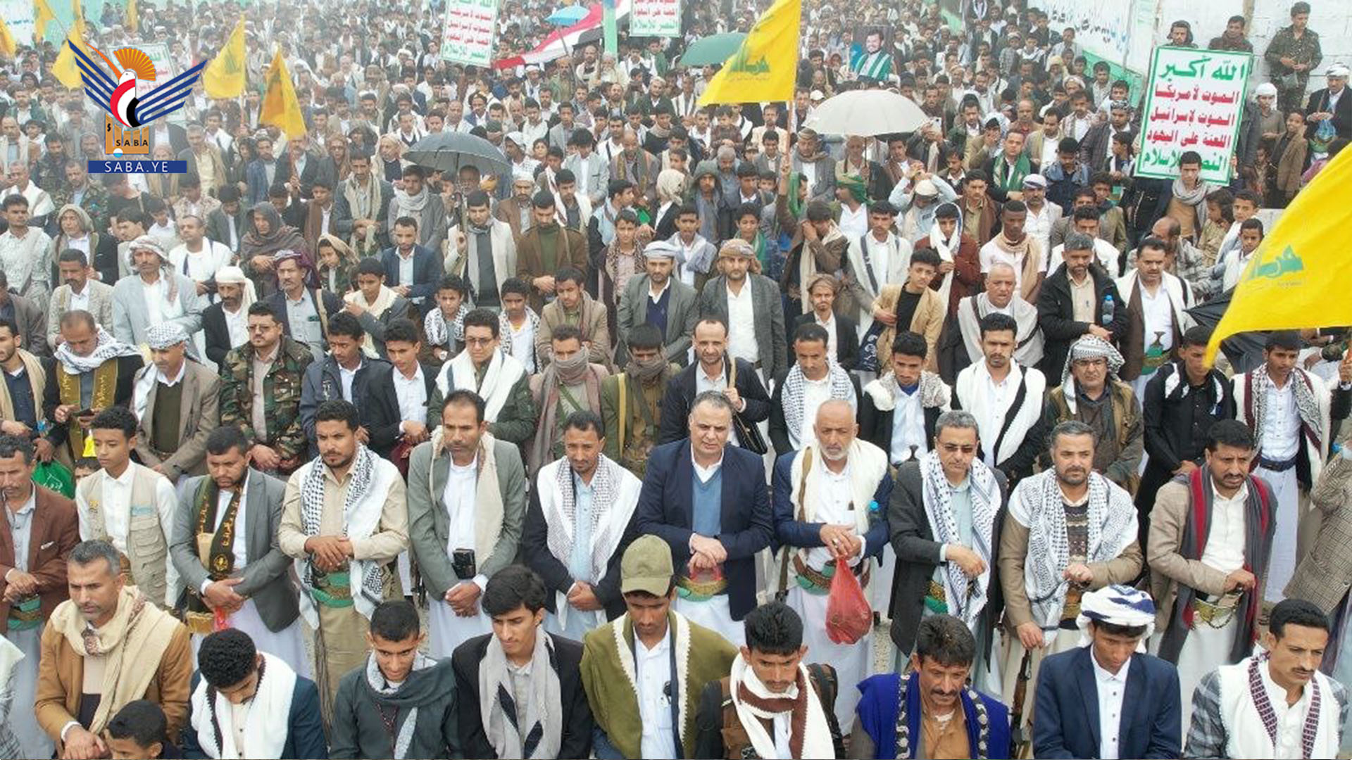 تخللت المسيرات التي شارك فيها مديرو المكاتب التنفيذية والمديريات وأعضاء المجالس المحلية وشخصيات اجتماعية ومنتسبو الوحدات التربوية والإدارية والصحية، الاستماع إلى بيان القوات المسلحة باستهداف قاعدة "نيفاتيم" للعدو الصهيوني بصاروخ "فلسطين 2".