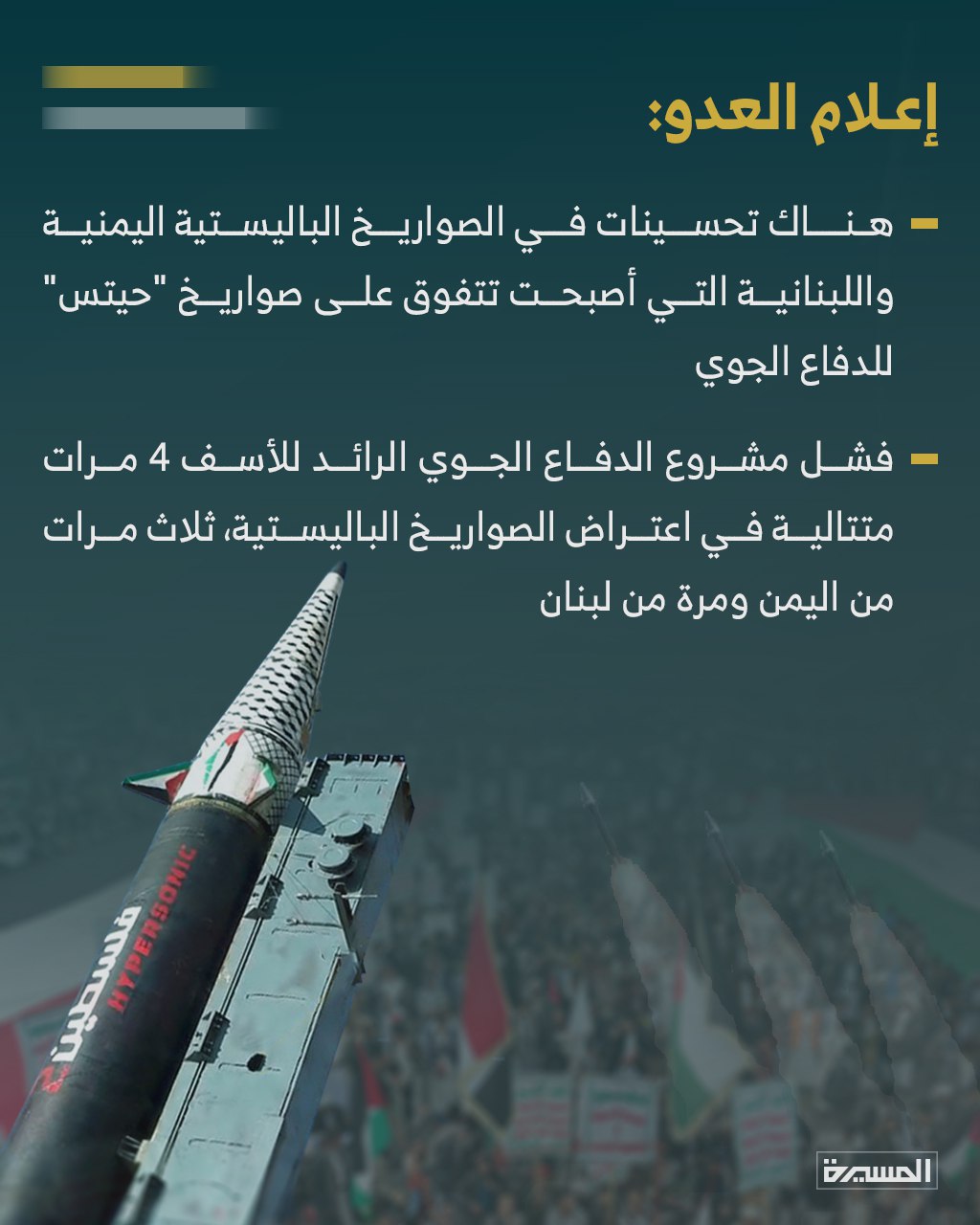 من جهته أقر عسكريون إسرائيليون، اليوم السبت، وبشكل ضمني عن فشل أنظمة الدفاع الجوي للكيان الصهيوني، وذلك على خلفية العملية اليمنية التي حققت هدفها بنجاح داخل عمق الأراضي المحتلة.