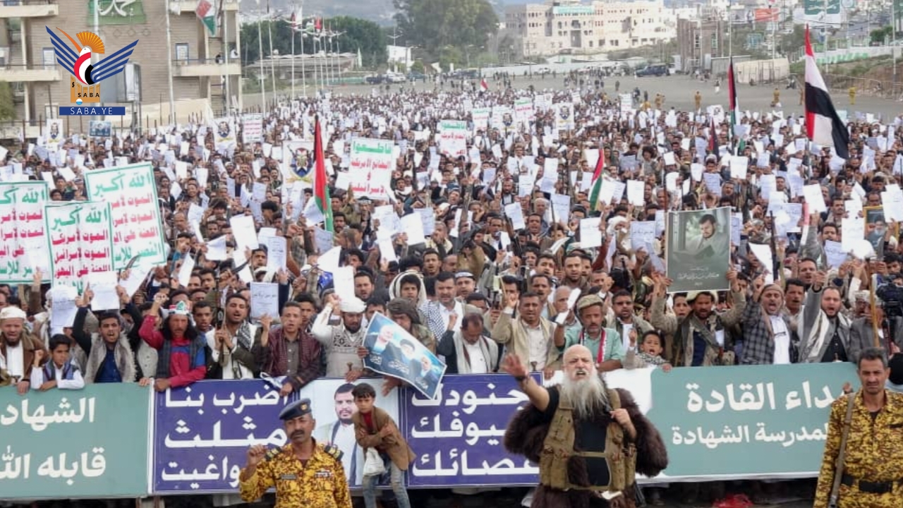 وأكد المشاركون في المسيرات الاستمرار في إسناد الشعب الفلسطيني حتى إيقاف العدوان على غزة، منددّين باستهداف العدوان الصهيوني للأعيان والمنشآت المدنية في العاصمة صنعاء ومحافظة الحديدة.