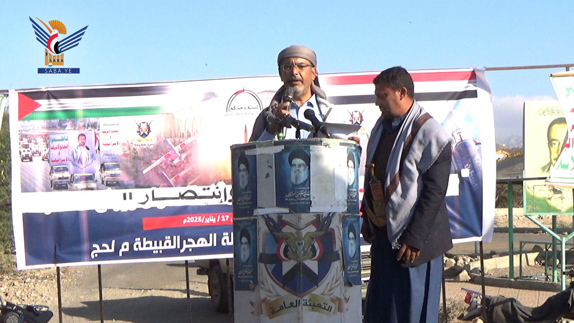 وبارك المشاركون في المسيرات التي تقدّمها وكيل المحافظة فيصل الفقية ومسؤول التعبئة بالمحافظة جميل الصوفي ومدير مديرية القبيطة وحيد الخضر ومسؤول التعبئة بالمديرية أحمد الأهدل ومدير أمن المديرية داؤود عبده علي وقيادات أمنية وعسكرية ومشايخ وشخصيات اجتماعية ومواطنين، الانتصار الذي حققته المقاومة الفلسطينية على كيان العدو الصهيوني والذي جاء نتيجة صمود أسطوري وثبات وصبر الشعب في قطاع غزة.