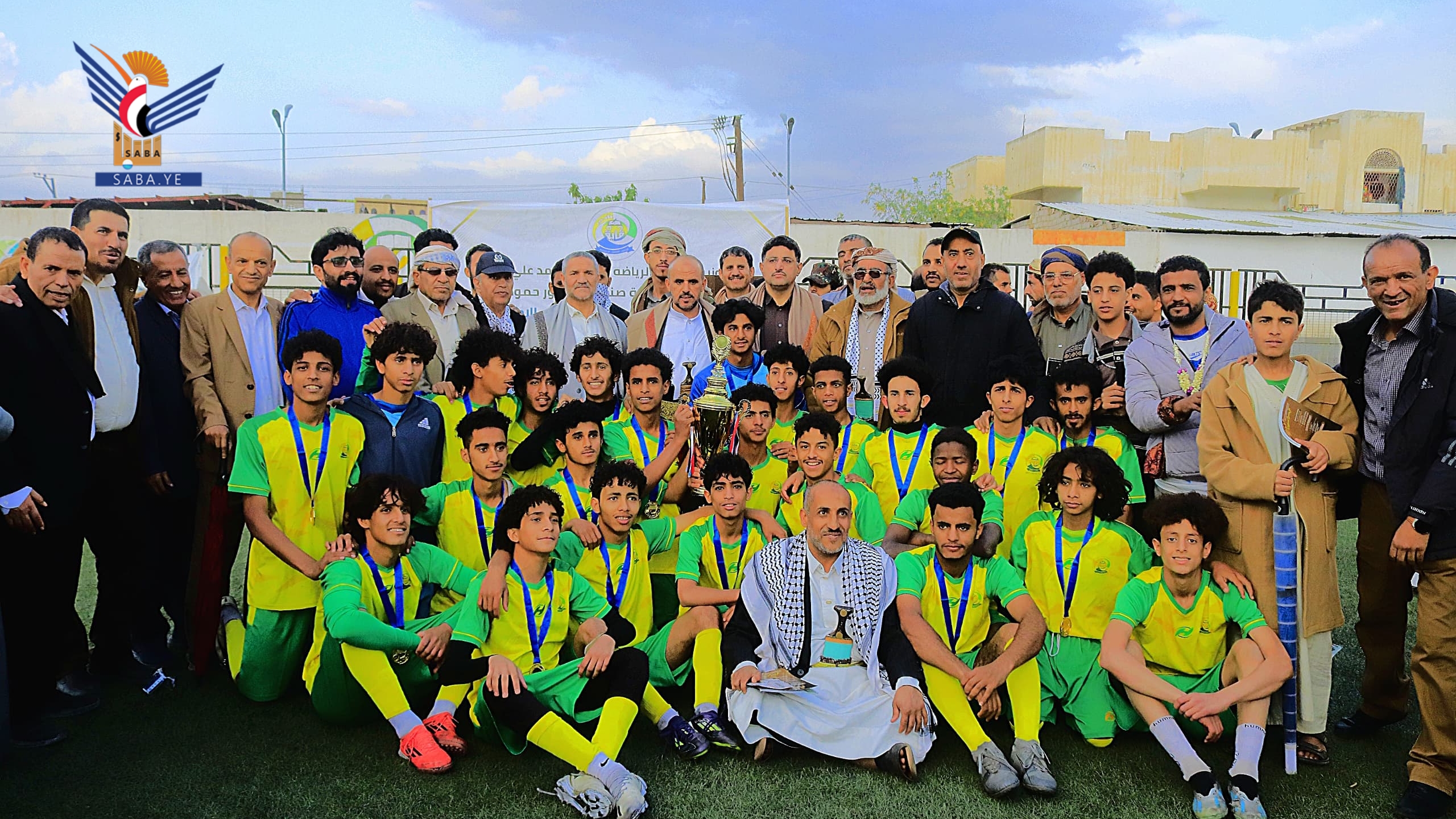 كًرم وزير الشباب والرياضة الدكتور محمد المولّد وأمين عام المجلس المحلي بأمانة العاصمة أمين جمعان ووكيل الهيئة العامة للزكاة - رئيس نادي 22 مايو علي السقاف، اليوم، الفائزين في بطولة الشهيد القائد الرمضانية الأولى لكرة القدم لفئتي الناشئين والبراعم، نظمتها ادارة نادي 22 مايو بالتعاون مع مكتب الشباب والرياضة بمديرية شعوب.