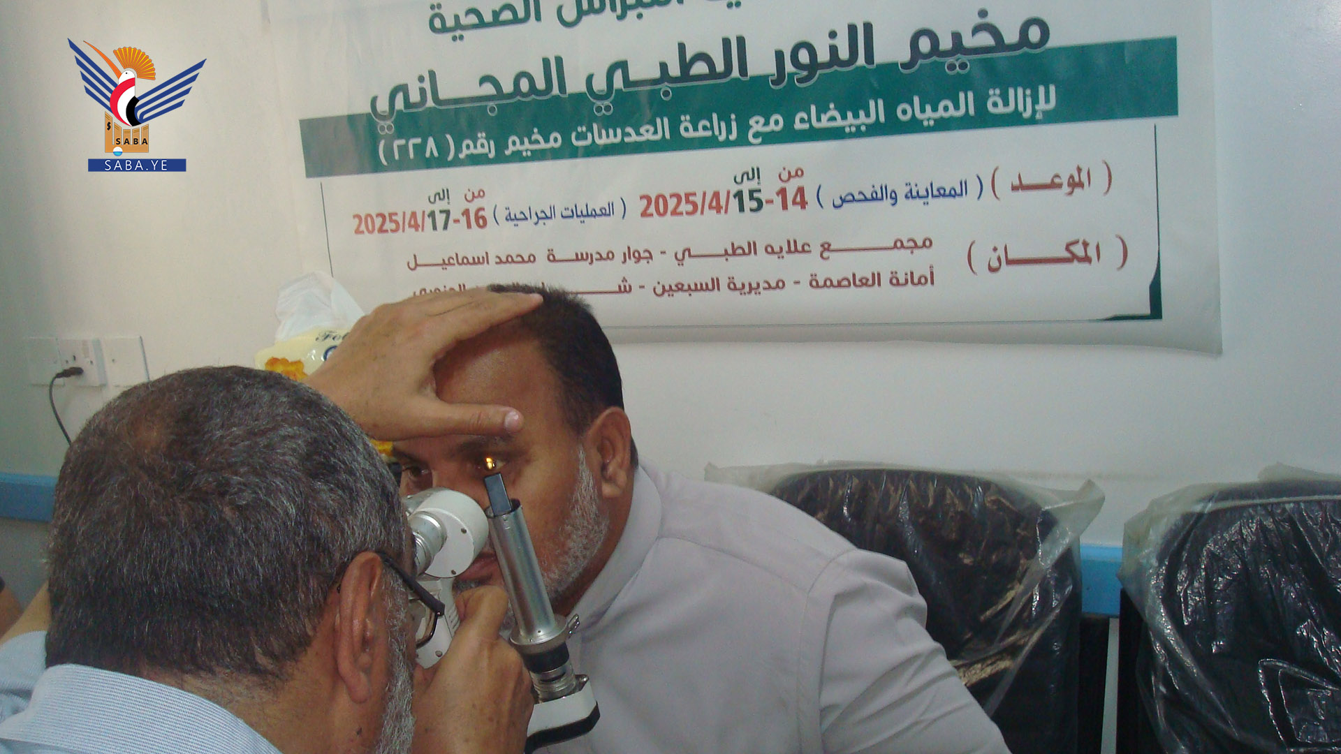دشن أمين العاصمة الدكتور حمود عباد، بمجمع علاية الطبي بمديرية السبعين اليوم، مخيم النور المجاني الـ 228 لإزالة المياه البيضاء وزراعة العدسات، تنفذه جمعية النبراس الصحية بالشراكة مع مؤسسة التواصل للتنمية الإنسانية.