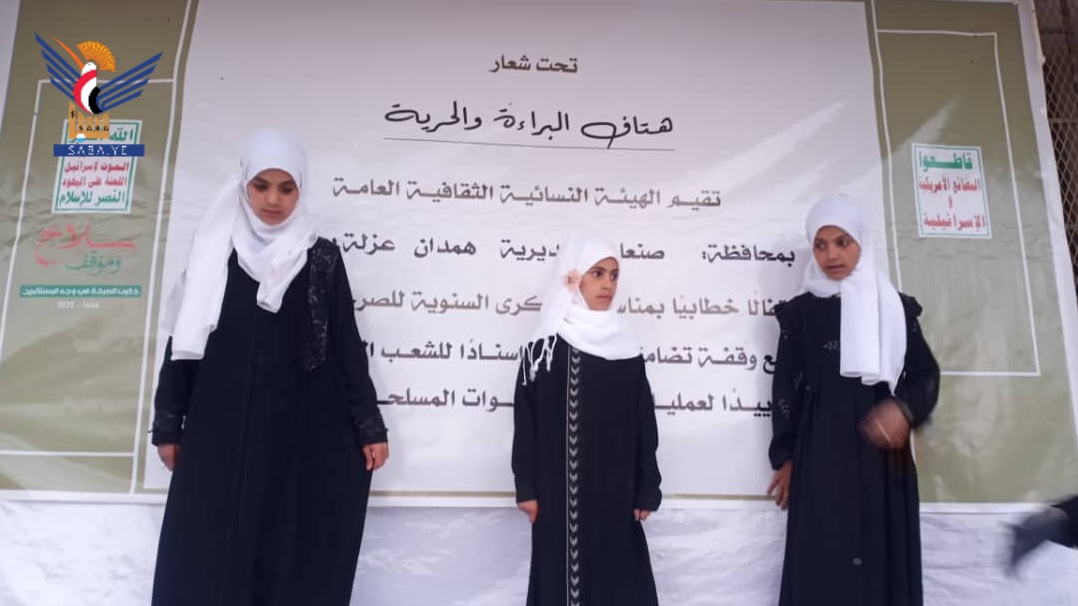 نظمت الهيئة النسائية بمديرية همدان، بمحافظة صنعاء، فعالية خطابية بالذكرى السنوية للصرخة، تحت شعار "الصرخة.. هتاف البراءة والحرية".