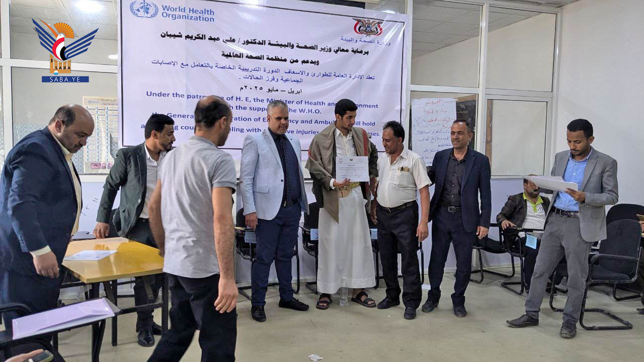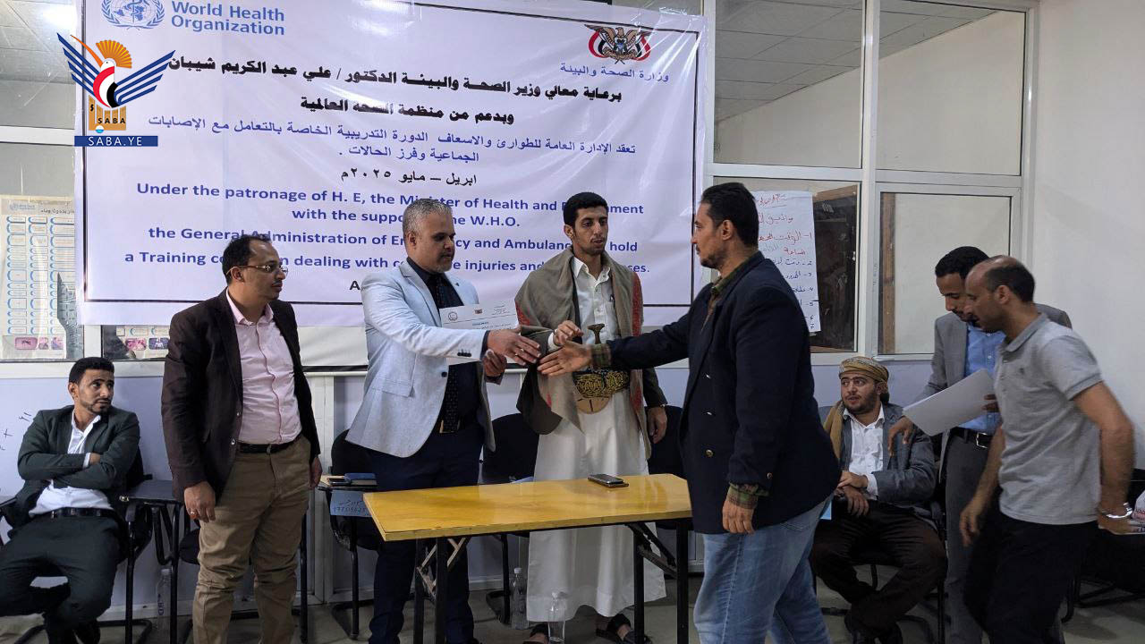 اختتمت بصنعاء اليوم الدورة التدريبية الرابعة حول الإنعاش القلبي الرئوي الأساسي، نظمتها الإدارة العامة للطوارئ والإسعاف بوزارة الصحة والبيئة.