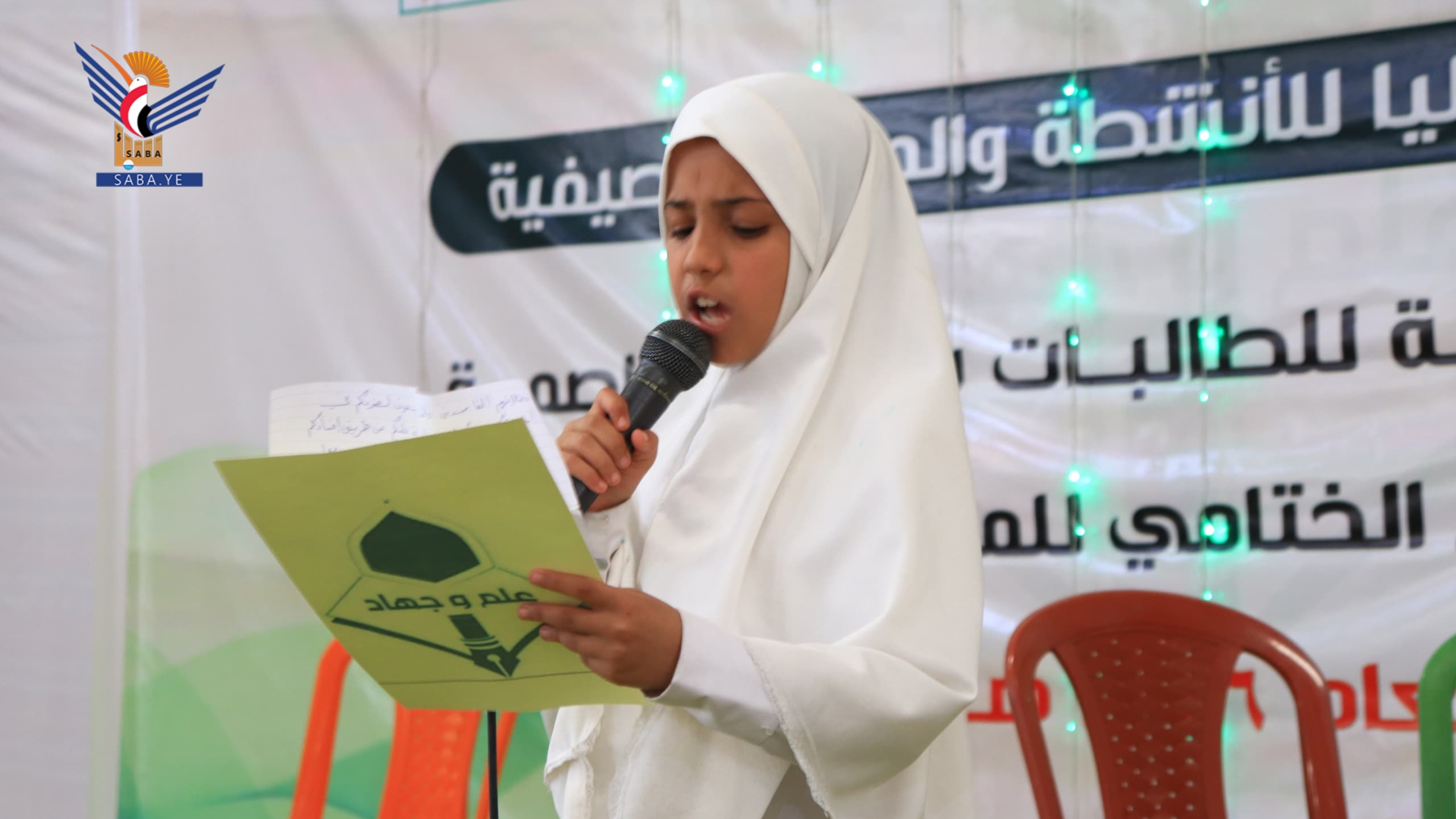 تخللت الحفل الذي حضرته عضو اللجنة الفنية للأنشطة والدورات الصيفية أمة العليم الديلمي أناشيد وأوبريت وقصيدة شعرية وفقرات مسرحية معبرة.