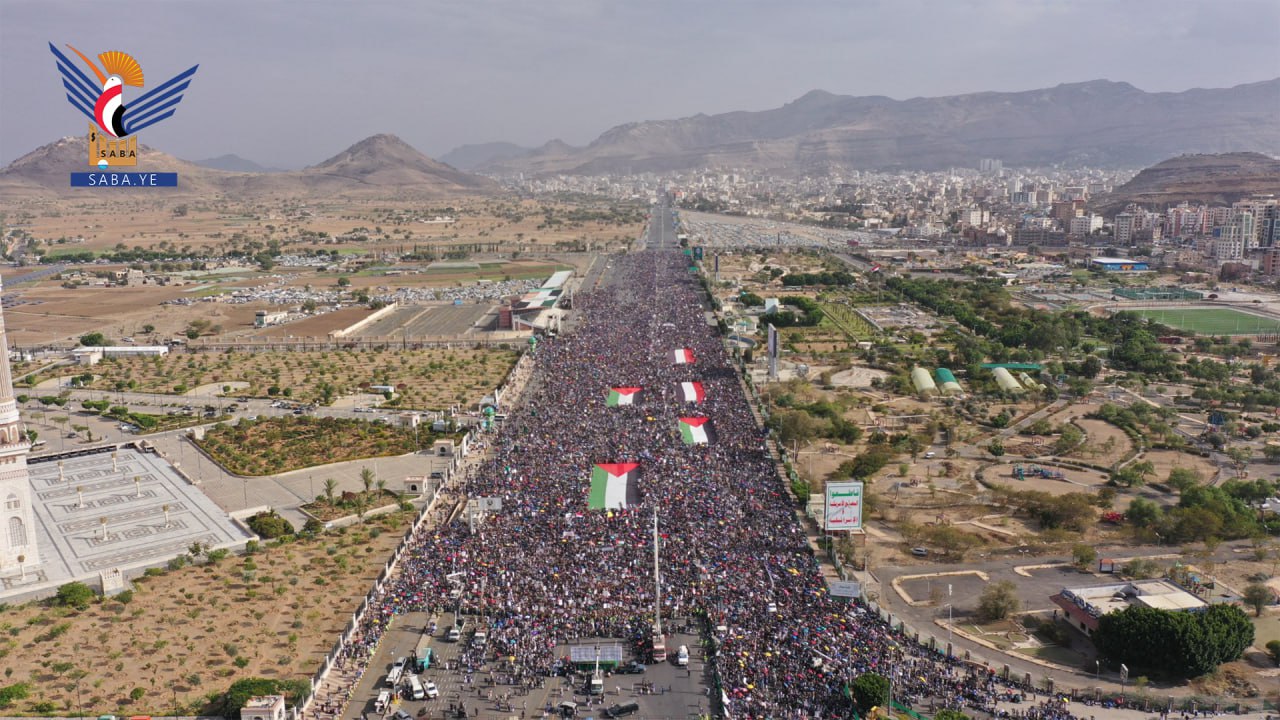 شهدت العاصمة صنعاء اليوم، مسيرة جماهيرية كبرى نصرة للشعب الفلسطيني ومباركة للشعب الإيراني بالانتصار العظيم تحت شعار "مباركة بانتصار إيران.. وثباتاً مع غزة حتى النصر".