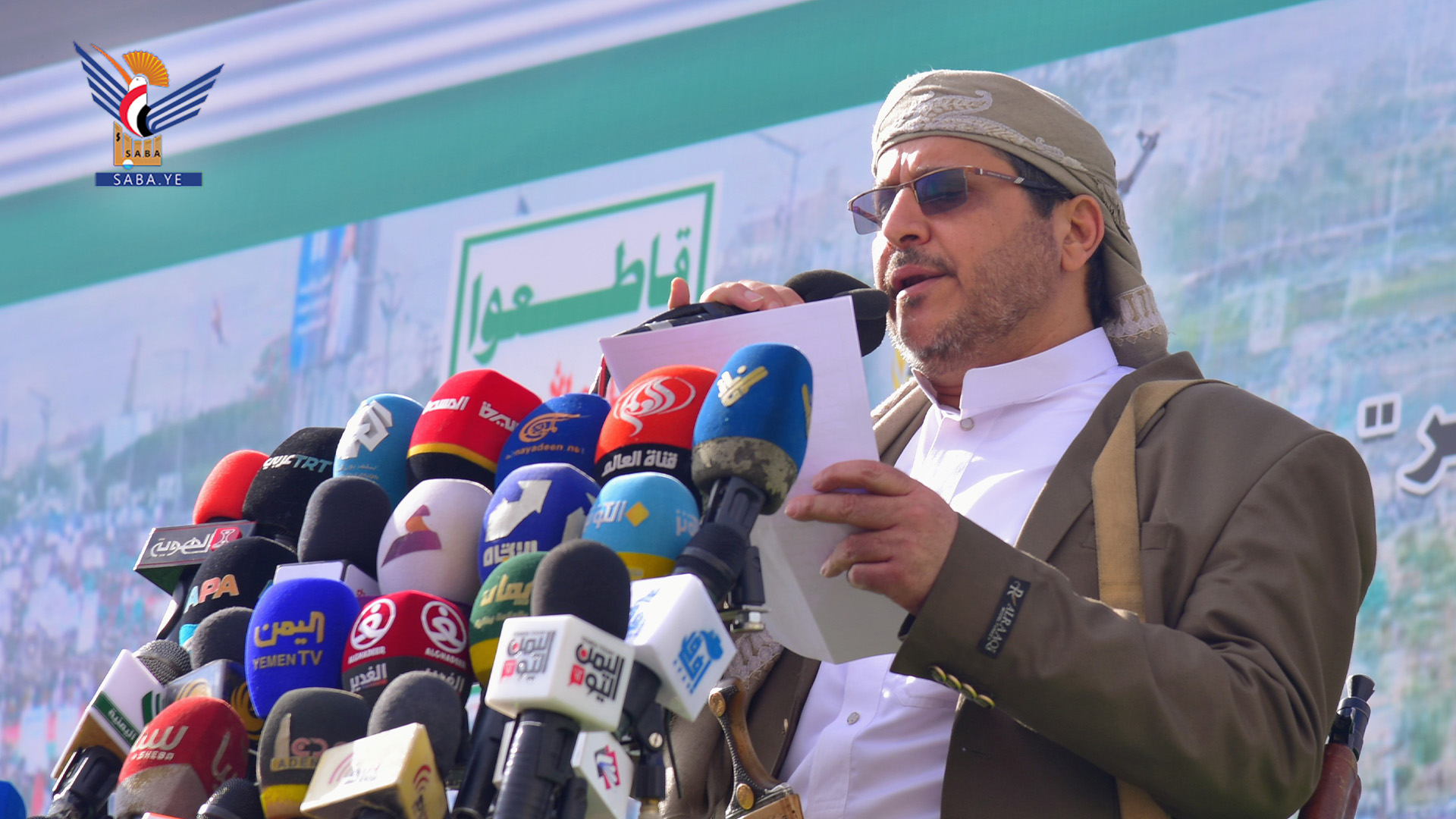 وأضاف "وبهذه المناسبة المرتبطة بوجدان الشعب اليمني، وتاريخه الإيماني المشرف من أسلافه العظماء، أنصار رسول الله صلوات الله وسلامه عليه وعلى آله، إلى حاضرهم المجيد المنتمى للمسيرة القرآنية والحامل الأول لها، نجدد العهد والوعد لله تعالى، ولرسوله صلوات الله عليه وعلى آله، ولقائد مسيرة القرآن وحامل راية الجهاد السيد القائد عبد الملك بدر الدين الحوثي، بأننا على عهد الجهاد، والبذل، والعطاء، والوفاء، والولاء، سنمضي بهذه المسيرة دون تردد، أو تراجع، أو تخاذل، متوكلين على الله، ومعتمدين عليه، وواثقين به، حتى يحقق الله لأمتنا النصر المبين والفتح الموعود بإذن الله".