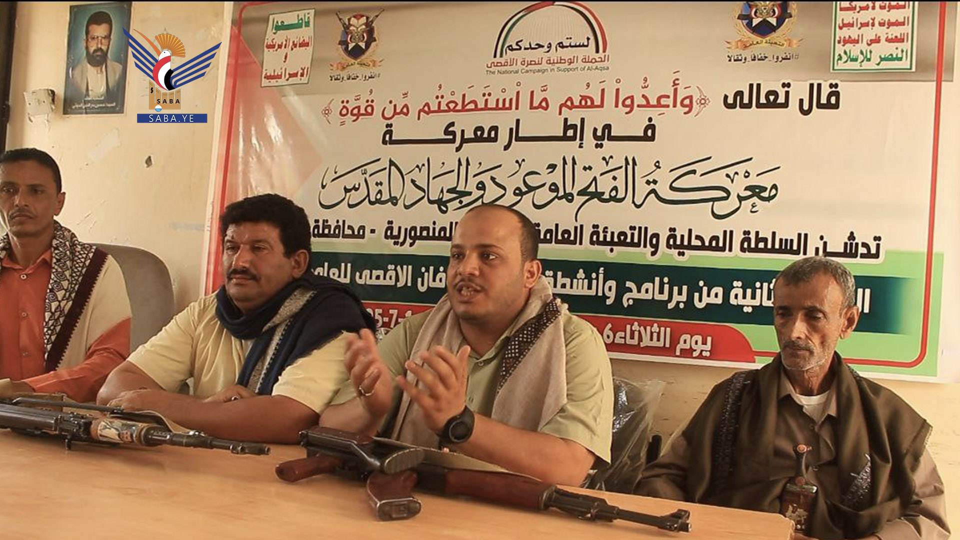 وتتوالى فعاليات التدشين في مختلف المديريات، ضمن برنامج تعبوي يركّز على رفع الجاهزية القتالية، وتعزيز الوعي بمخاطر العدوان الصهيوني، وترسيخ التعبئة العامة حول القضية الفلسطينية باعتبارها قضية الأمة المركزية.