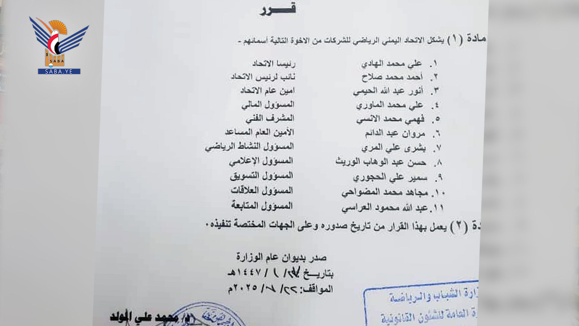 وزير الشباب يصدر قراراً بإعادة تشكيل الاتحاد اليمني الرياضي للشركات