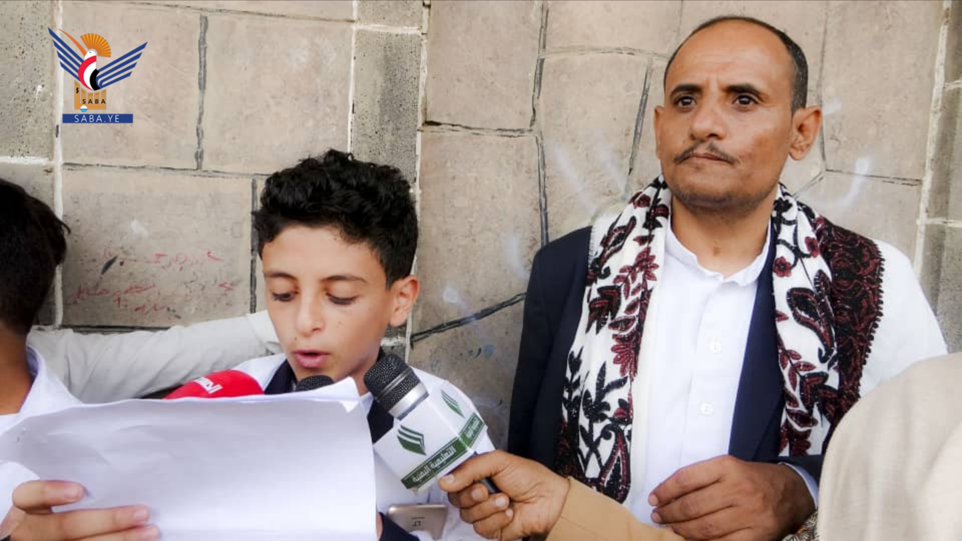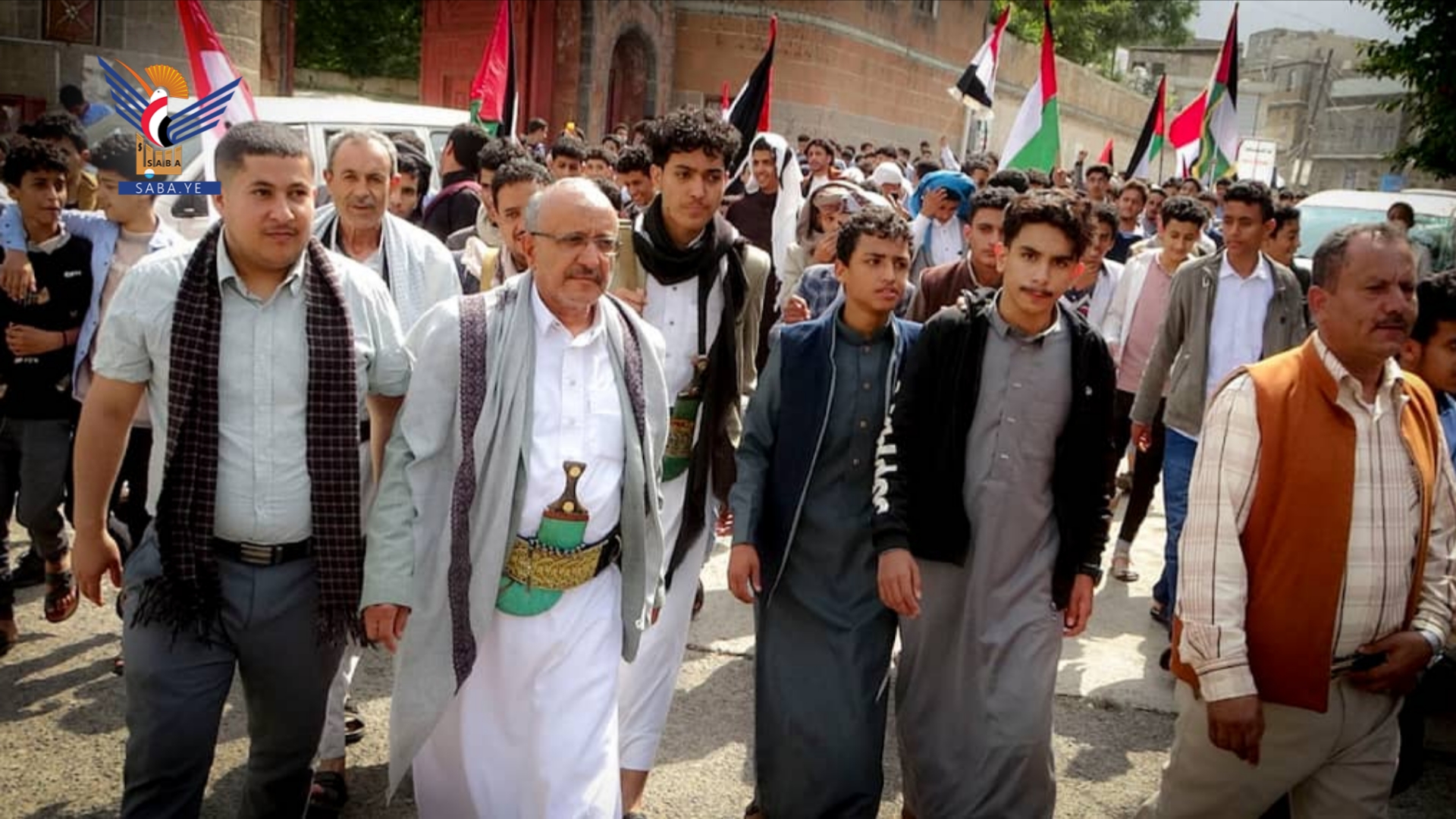 إب.. مسيرات طلابية تنديداً بجرائم الكيان الصهيوني في غزة