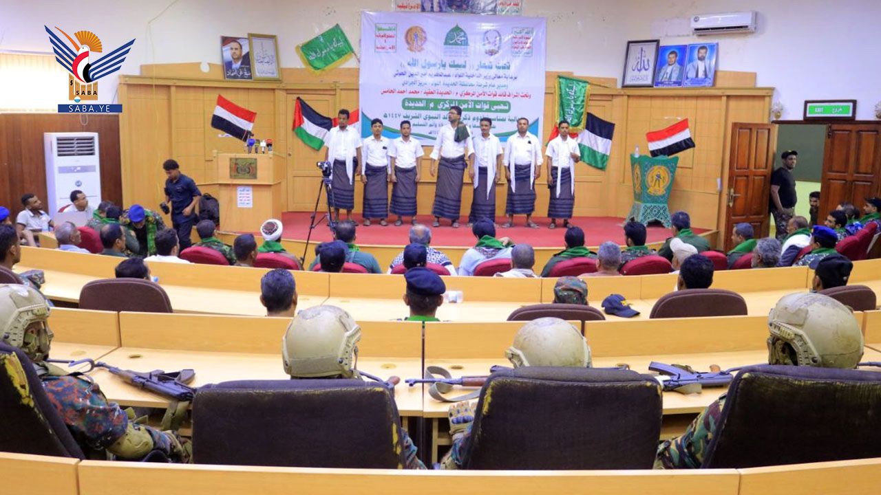 نظمًت قوات الأمن المركزي بمحافظة الحديدة، اليوم، فعالية خطابية بذكرى المولد النبوي الشريف على صاحبه أفضل الصلاة وأتم التسليم، تحت شعار "لبيك يا رسول الله".