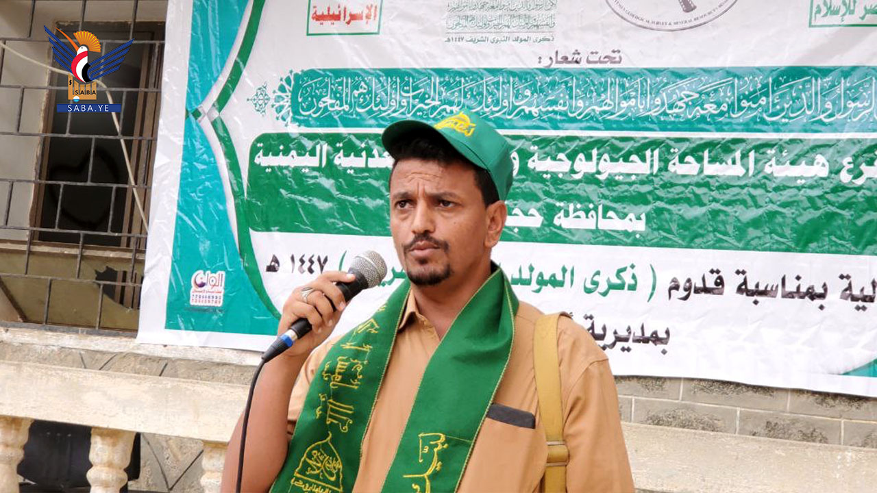 نظم فرع هيئة المساحة الجيولوجية والثروات المعدنية في محافظة حجة اليوم فعالية، خطابية بذكرى المولد النبوي الشريف على صاحبه وآله أفضل الصلاة وأتم التسليم.