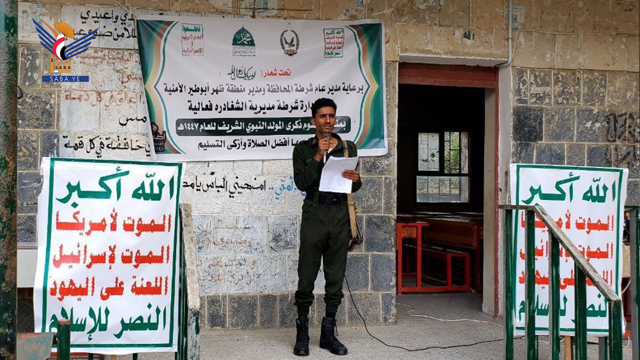 وفي مديرية الشغادرة، أشارت كلمات فعاليتين لفرعي الأمن وهيئة رعاية أسر الشهداء وقطاع الإرشاد، بحضور مدير المديرية مهيوب سراع، إلى دلالات الاحتفاء بذكرى المولد النبوي في التوقير والتعظيم للرسول الأكرم محمد صلوات الله عليه وآله وسلم.