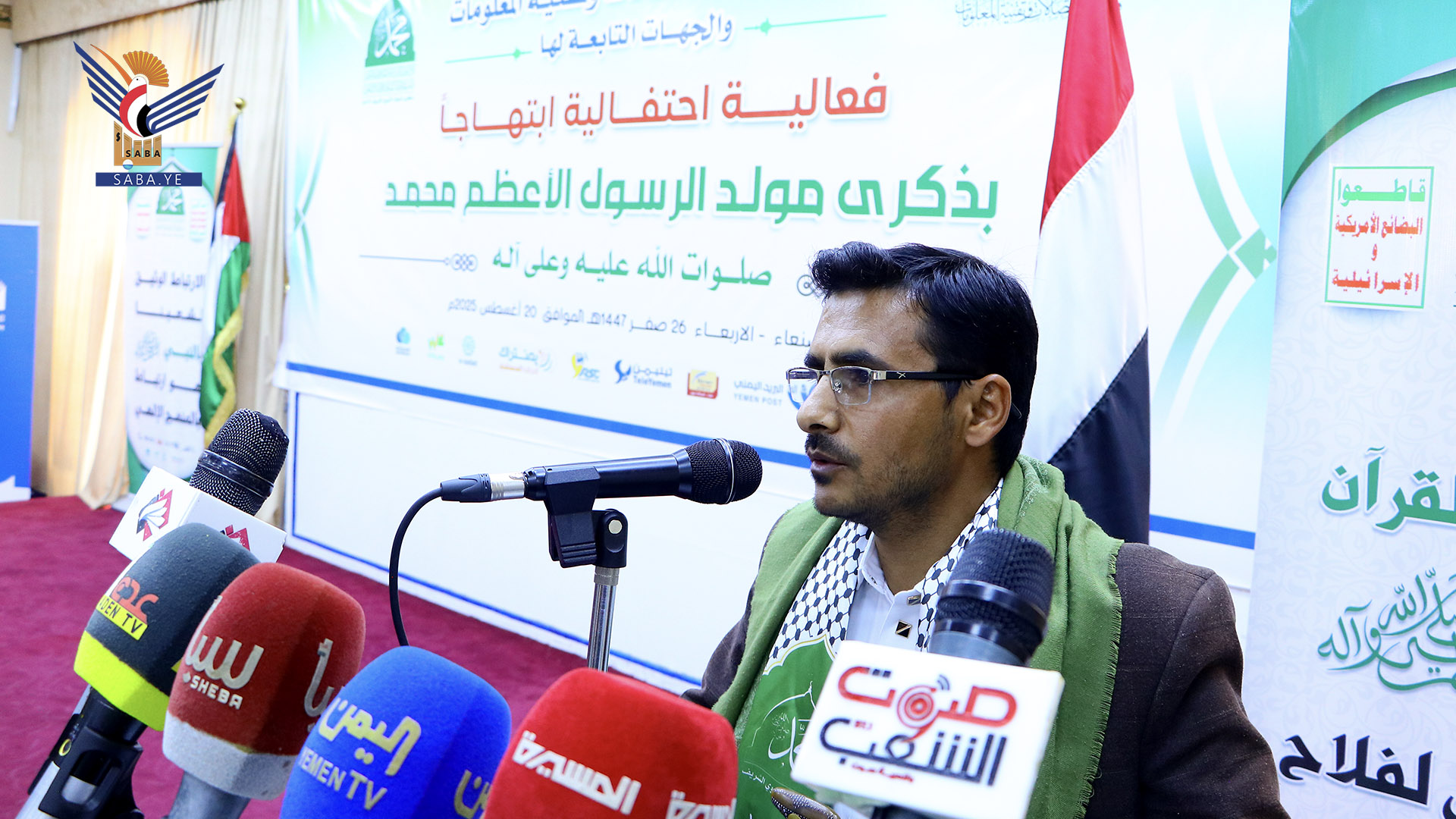 وأشار إلى أن اليمنيين يتصدرون شعوب الأمة العربية والإسلامية في احتفائهم بهذه المناسبة وإظهار حبهم وولائهم للنبي صلى الله عليه وآله وسلم.