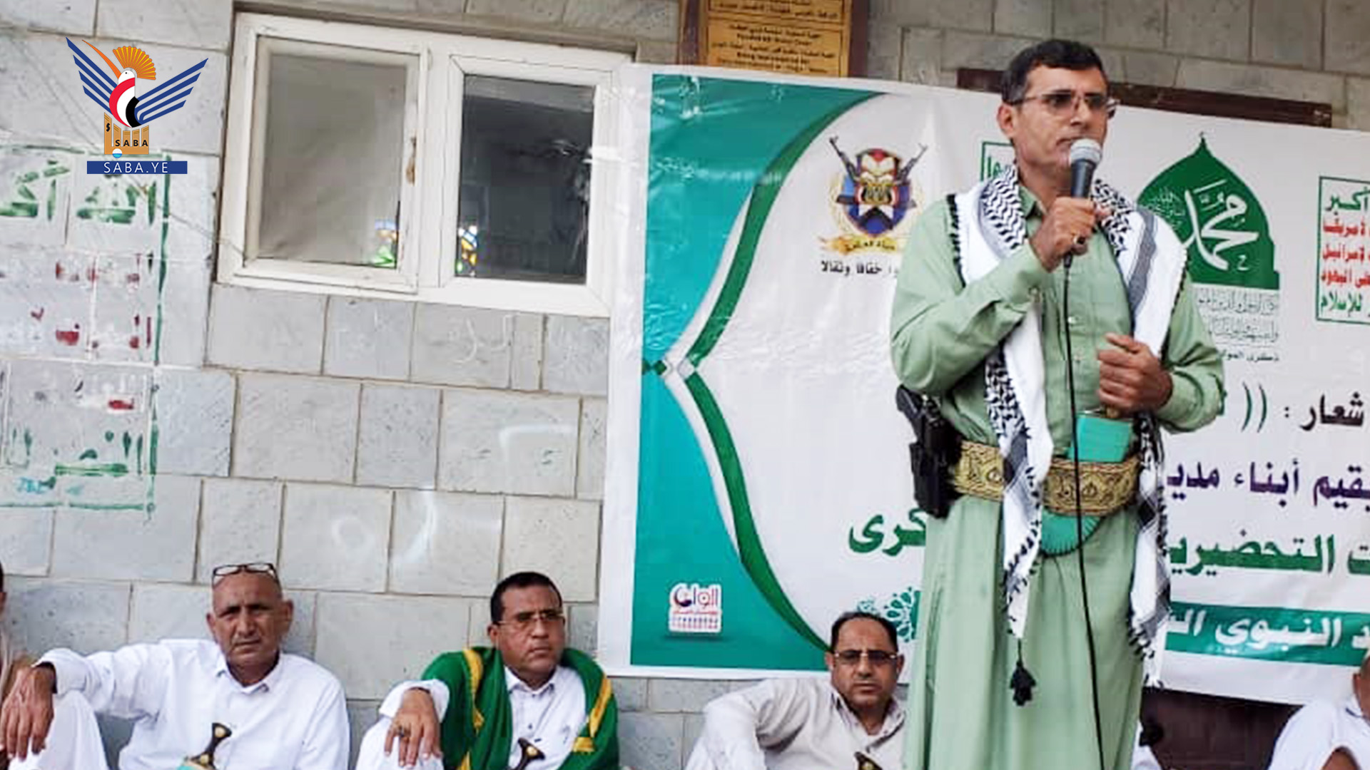 وفي الأمسيات أكد عضو المجلس المحلي بالمحافظة يحيى موسى ومدير فرع هيئة رعاية أسر الشهداء مطهر صفي الدين، أهمية الاحتفاء بالمولد النبوي تبجيلا وتعظيما وتقديسا للنبي الخاتم وطاعة لله واستجابة لأوامره وتعبيرا عن الحب له صلى الله عليه وآله وسلم.