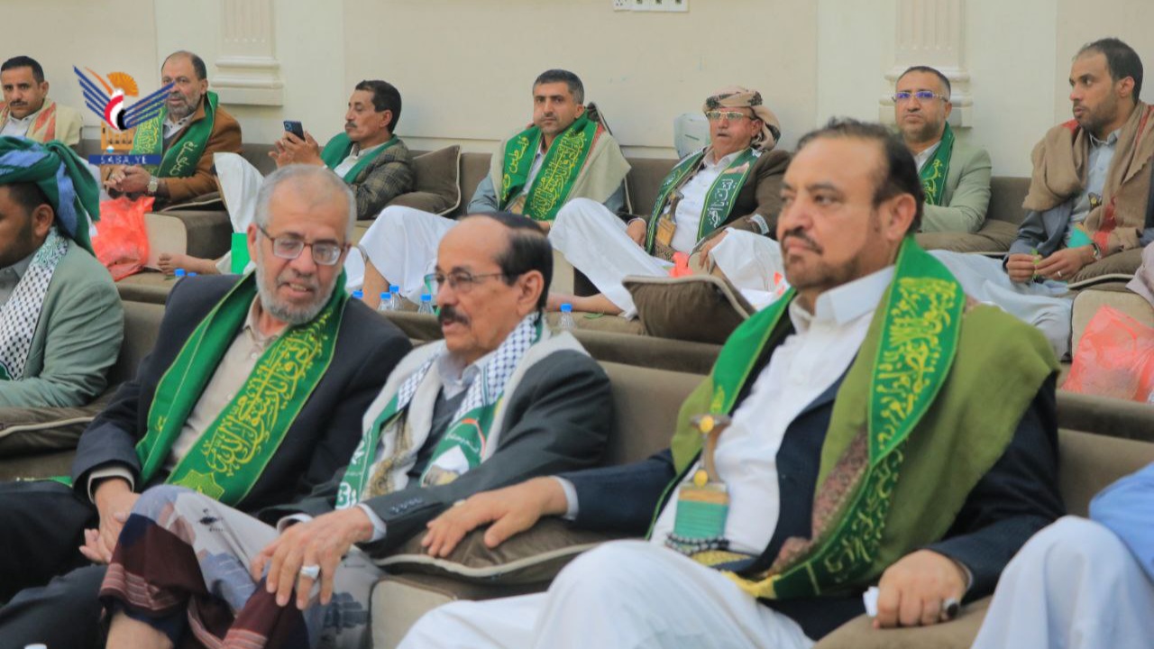 نظم المكتب السياسي لأنصار الله وأمانة العاصمة اليوم، فعالية خطابية إحياء لذكرى المولد النبوي الشريف على صاحبه وآله أفضل الصلاة وأزكى التسليم.