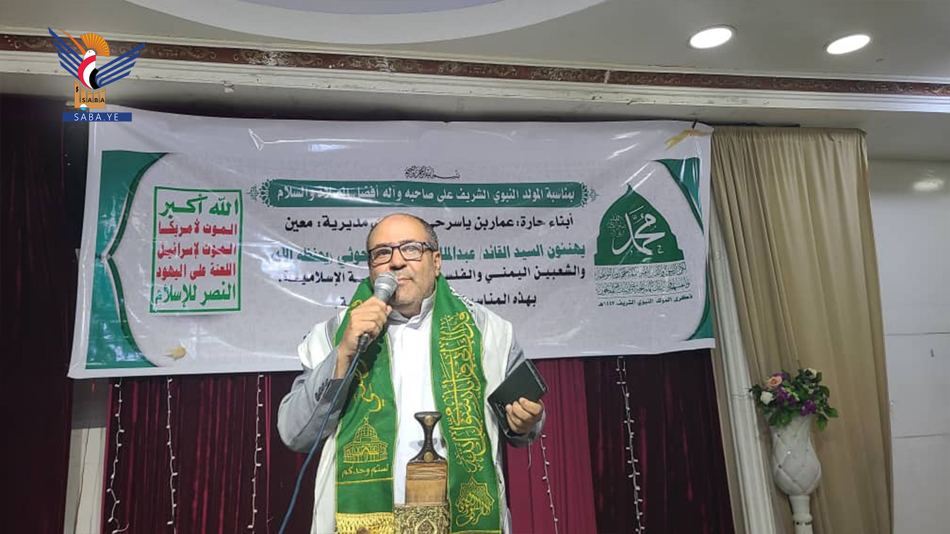 حيث نظم أبناء حارة عمار بن ياسر بحي الدائري الغربي، أمسية ثقافية، أكد خلالها عضو مجلس الشورى يحيى جحاف، ان الإحتفال بالمولد النبوي يدل على عمق ارتباط اليمنيين بنبيهم الكريم، والتأسي والاقتداء به وتمسكهم بنهجه القويم.