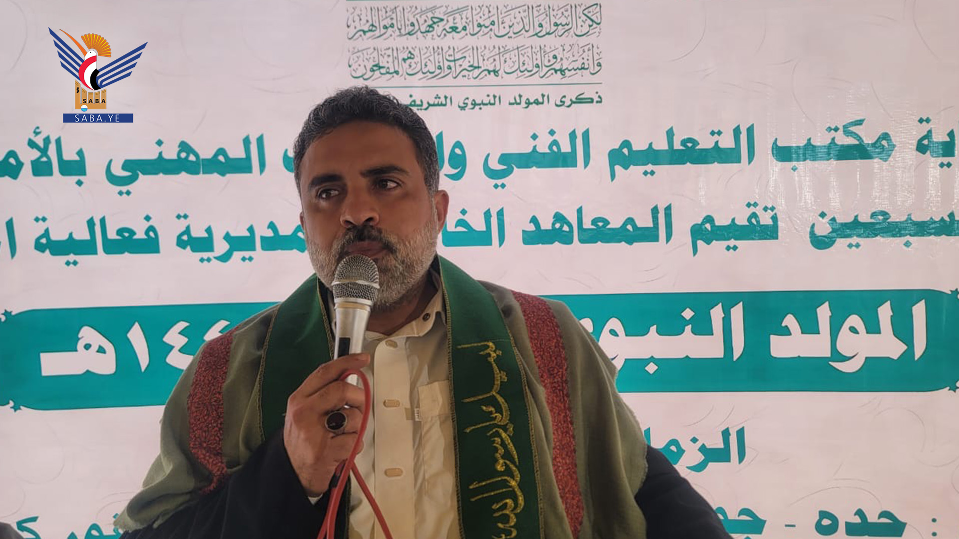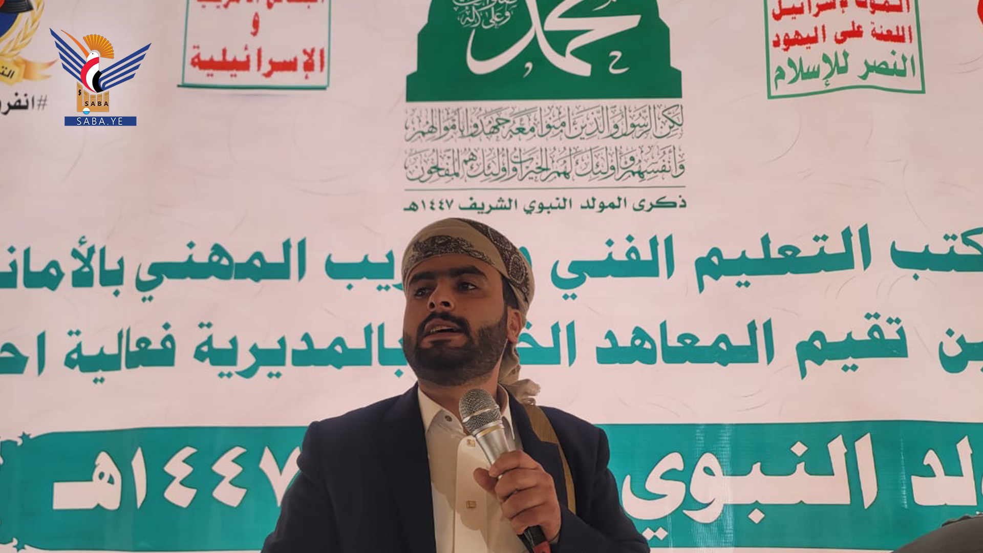 وخلال الفعالية أشار مسؤول قطاع التعليم الفني بأمانة العاصمة عبدالله شرف الدين، إلى أهمية دور وتفاعل المؤسسات التعليمية في إحياء ذكرى مولد الرسول الأعظم الذي اخرج هذه الأمة والبشرية من الظلمات إلى النور.