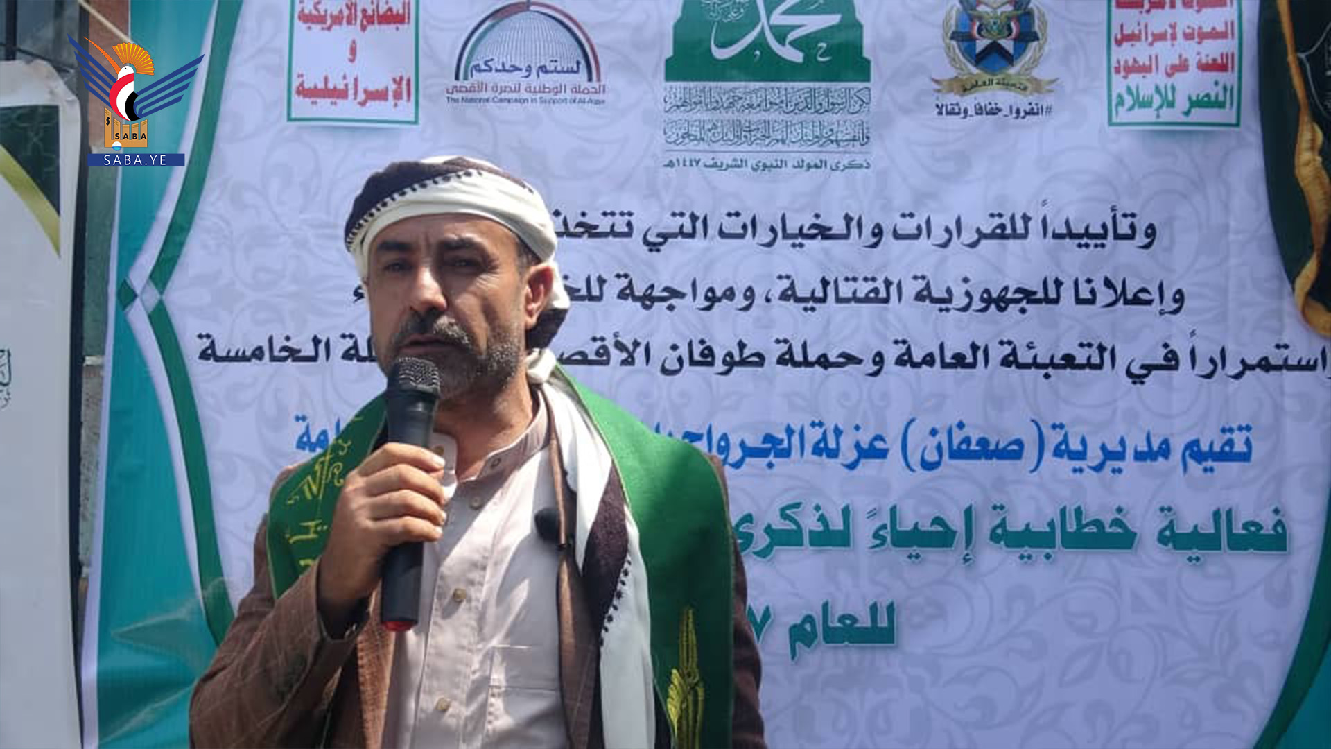 نظمت السلطة المحلية والتعبئة العامة في مديرية صعفان بمحافظة صنعاء اليوم، فعالية ثقافية احتفاء بذكرى المولد النبوي الشريف على صاحبه وآله أفضل الصلاة وأتم التسليم.