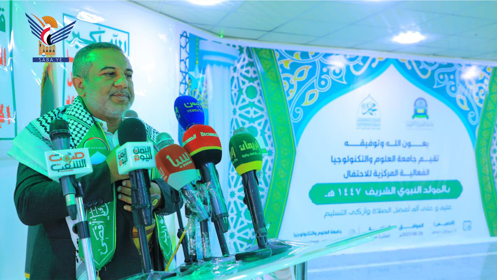 وشدد على أهمية العودة لسيرة الرسول الأعظم صلى الله عليه وآله وسلم، وترسيخ الارتباط به، والتأسي بأخلاقه وقيمه ومبادئه النبيلة وتجسيدها في كل شؤون الحياة.