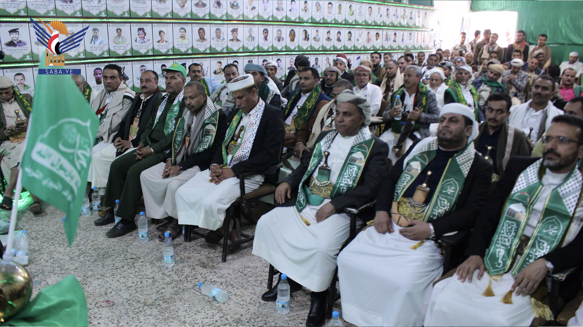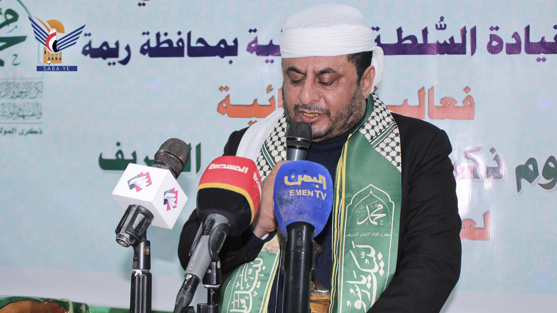 ودعا، أبناء ريمة إلى التحشيد للفعالية المركزية يوم الـ 12 من ربيع الأول في الساحات المحددة بالمحافظة لإرسال رسالة للعالم بالتمسك بالرسول الكريم والمضي على دربه الجهادي لإعلاء كلمة الله ومقارعة الظالمين والمنافقين.