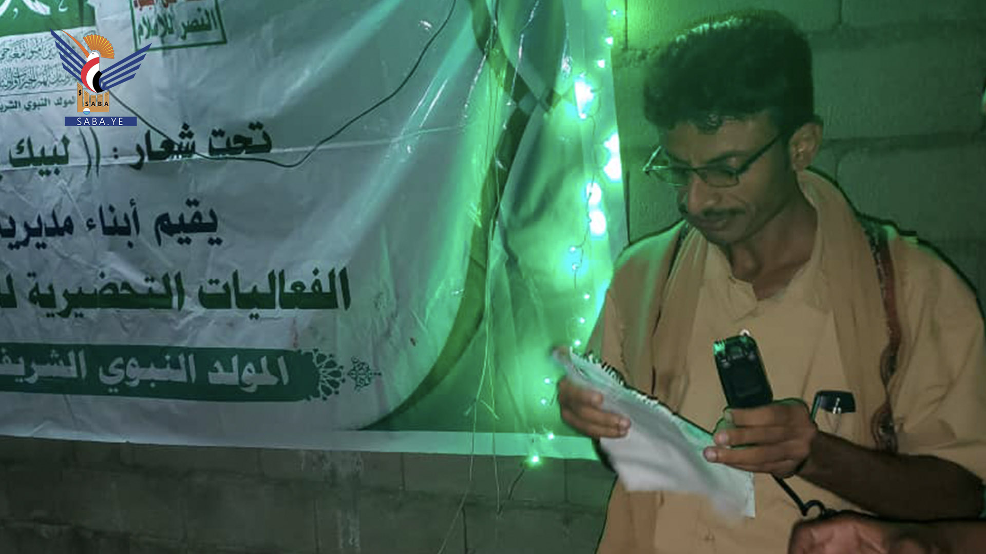 نظمت السلطة المحلية والتعبئة في حرض محافظة حجة، أمسية لنازحي حرض في مخيم الزعلية بمديرية عبس، بذكرى بالمولد النبوي.
