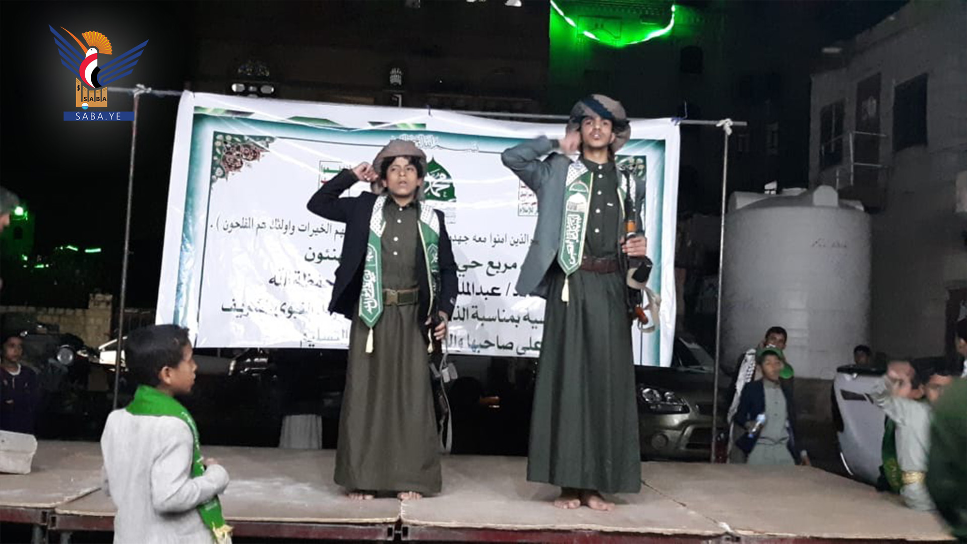 حيث شارك في الأمسيات التي نظمها أبناء حي بيت الخاوي، وبيت الجلال بحي الحتارش، ومربع الجمنة بحي دارس، عضو مجلس الشورى عادل الحنبصي، واعتبر عضو المجلس المحلي بالأمانة محسن هارون، إحياء هذه المناسبة العظيمة، انتصاراً للمبادئ والقيم التي حملتها الرسالة المحمدية، واستنهاضاً لأبناء الأمة من أجل نصرة الحق والمستضعفين، والتحلي بأخلاق وسيرة وصفات النبي الكريم والسير على نهجه القويم.