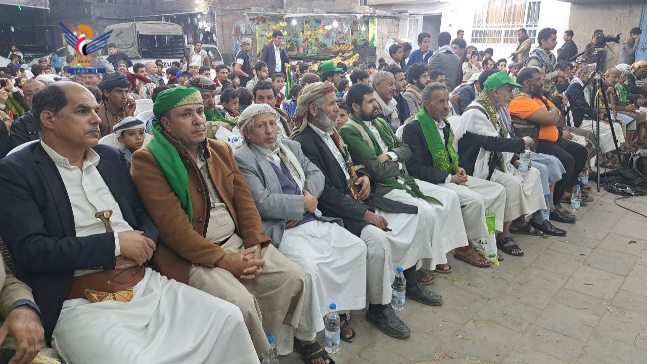 وفي حي شملان، نظم مكتب التعبئة العامة لقاءً موسعاً لأبناء الحي، أكد خلاله الوكيل المساعد بأمانة العاصمة سامي شرف الدين، أهمية تعزيز الحشد للفعالية المركزية، مشيداً بصمود الشعب اليمني واقتدائه بالرسول الكريم في مواجهة التحديات.