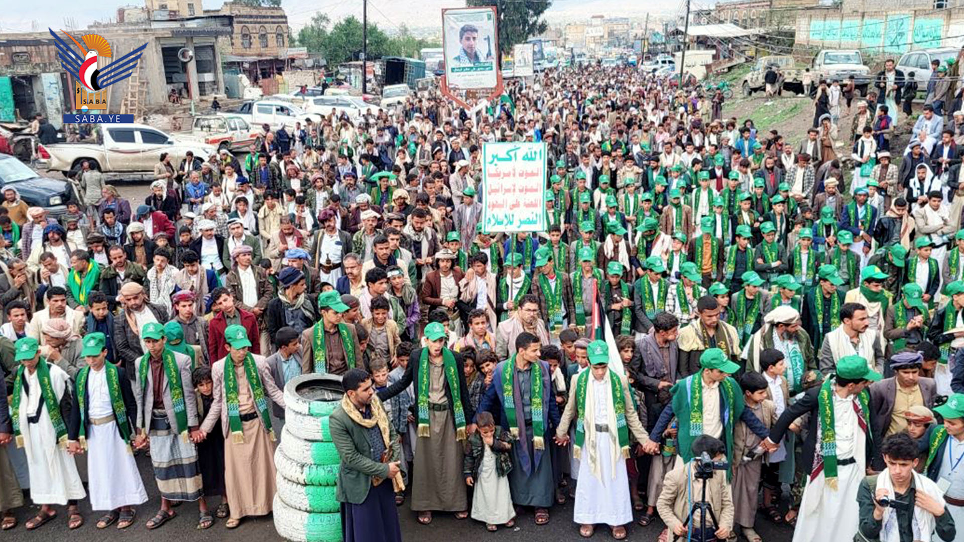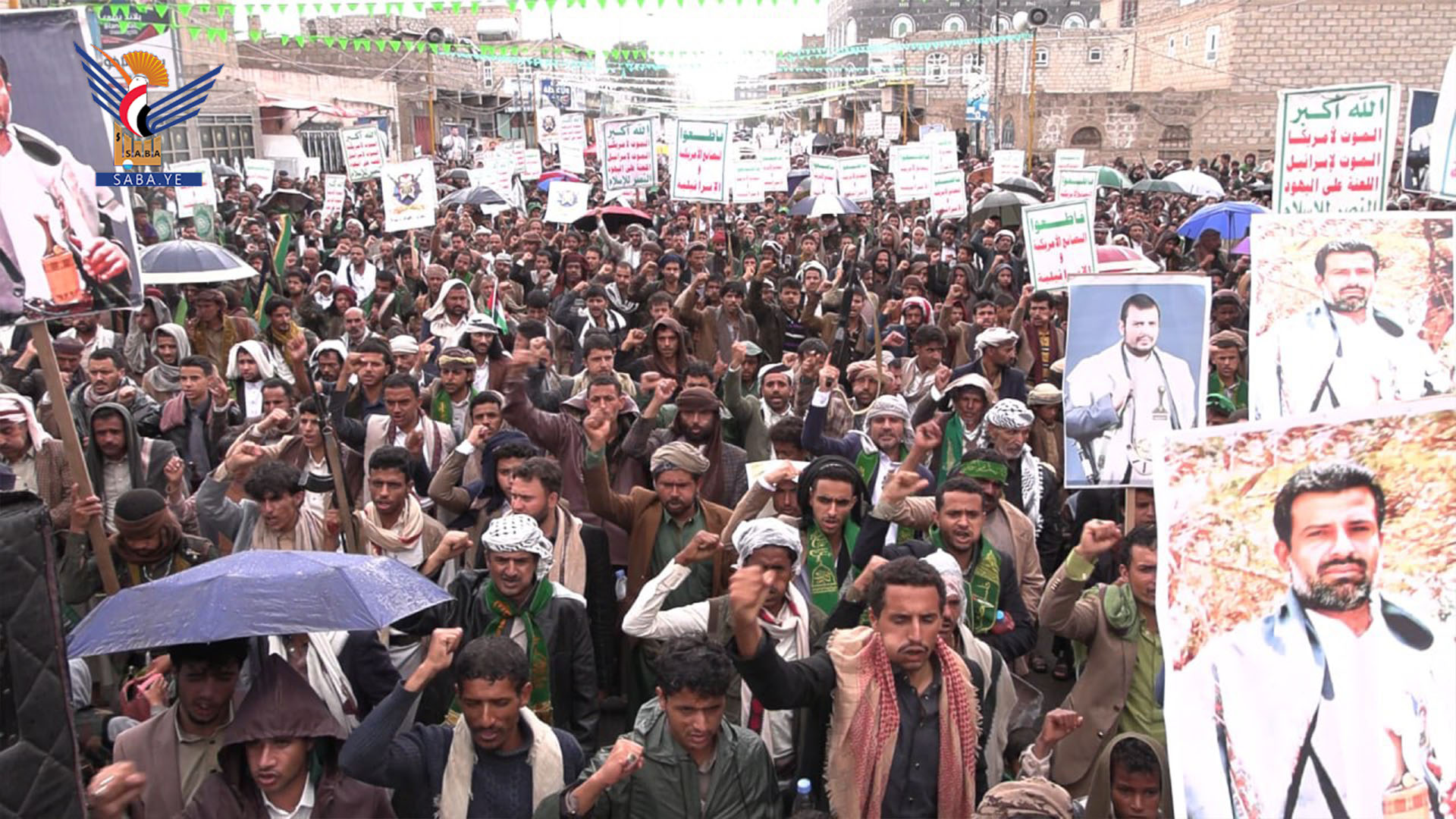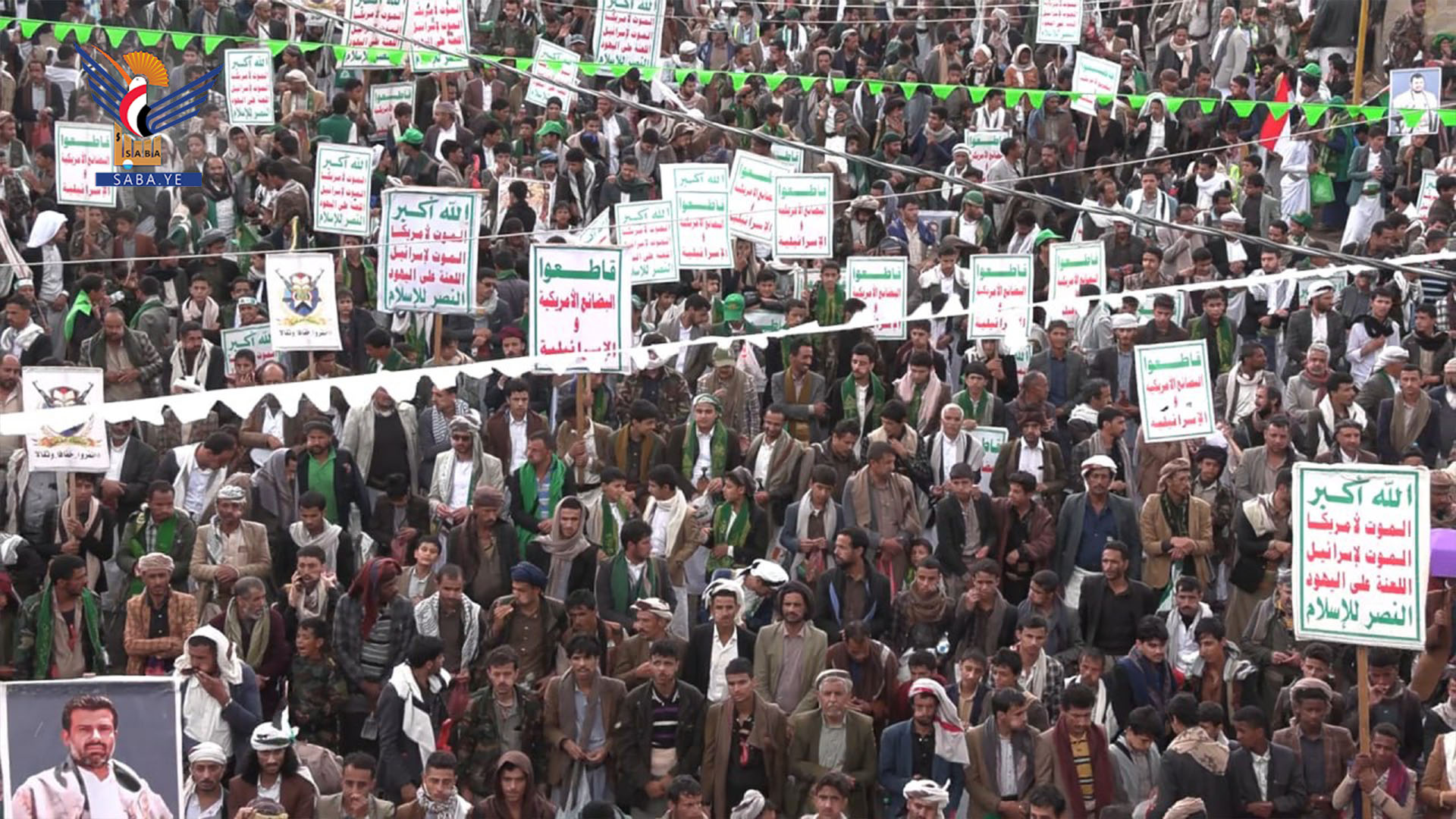 وأكدت الحشود، الثبات في إسناد الشعب الفلسطيني ونصرة غزة، مشيدين بالصمود الفلسطيني، وبإنجازات القوات المسلحة اليمنية في إنتاج رؤوس الصواريخ الإنشطارية، وعملياتها ضد العدو الصهيوني.