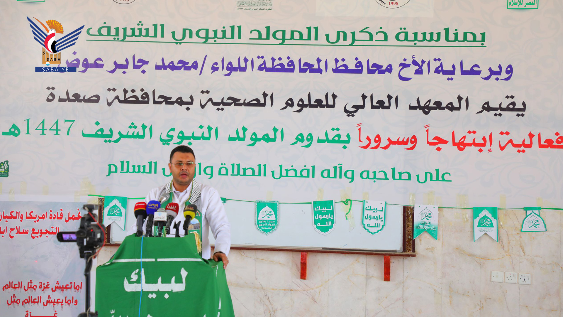وخلال الفعالية أشار محافظ صعدة محمد عوض إلى أهمية هذه المناسبة وإحياؤها بإقامة الفعاليات والأنشطة وتزيين الشوارع والمكاتب والمنازل تعبيرا عن الحب لرسول الله صلى الله عليه وعلى آله وسلم وشكرا لله على هذه النعمة.