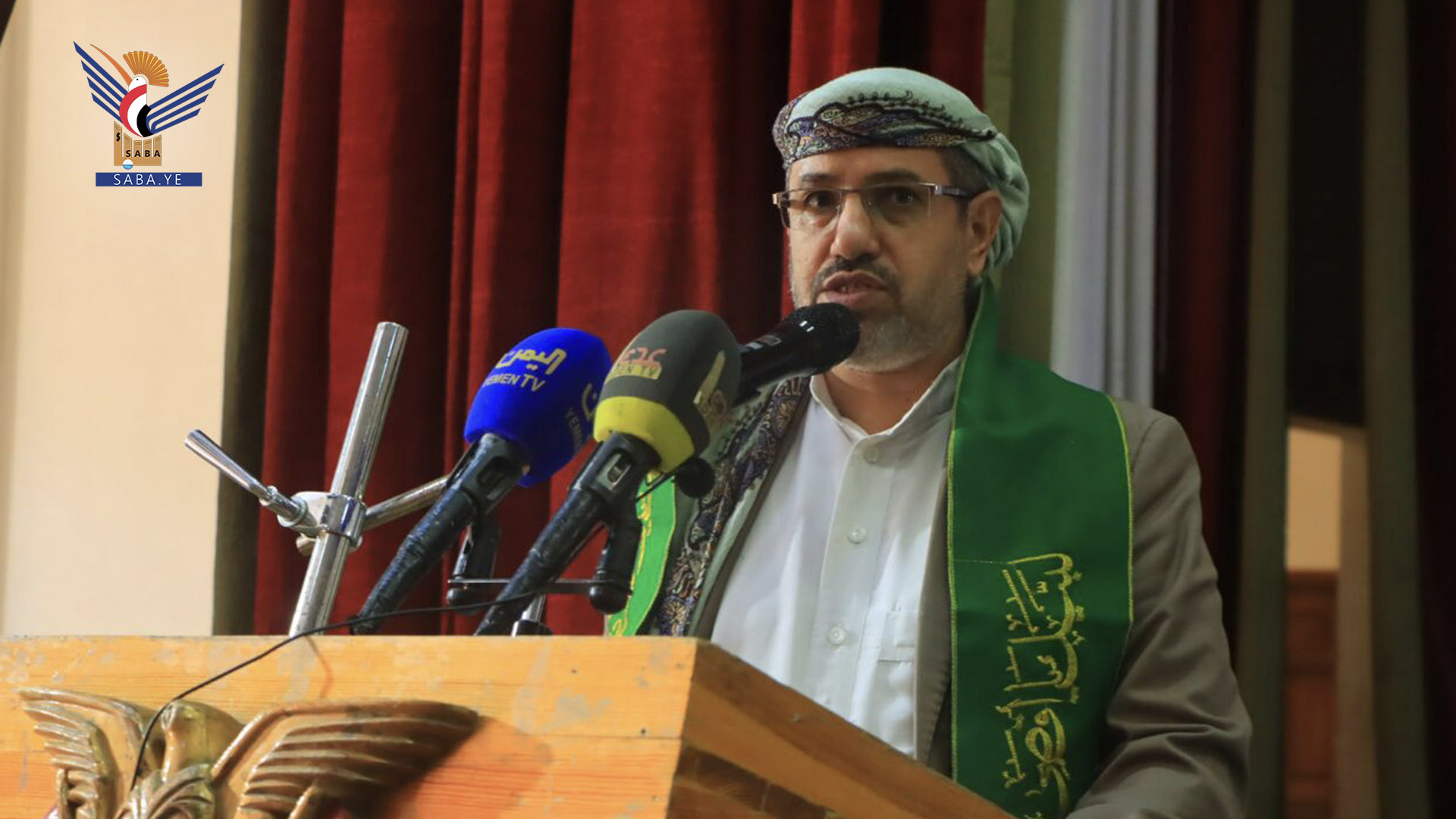 واعتبر هذه المناسبة الدينية التي ستحل على الأمة خلال الأيام المقبلة، محطة لاستلهام الدروس والعبر من حياة النبي الأكرم وسيرته العطرة .. لافتًا إلى ما يتعرض له أبناء الشعب الفلسطيني من جرائم إبادة من قبل الكيان الصهيوني بدعم أمريكي، والموقف اليمني المشرف المساند للقضية الفلسطينية والداعم لغزة.