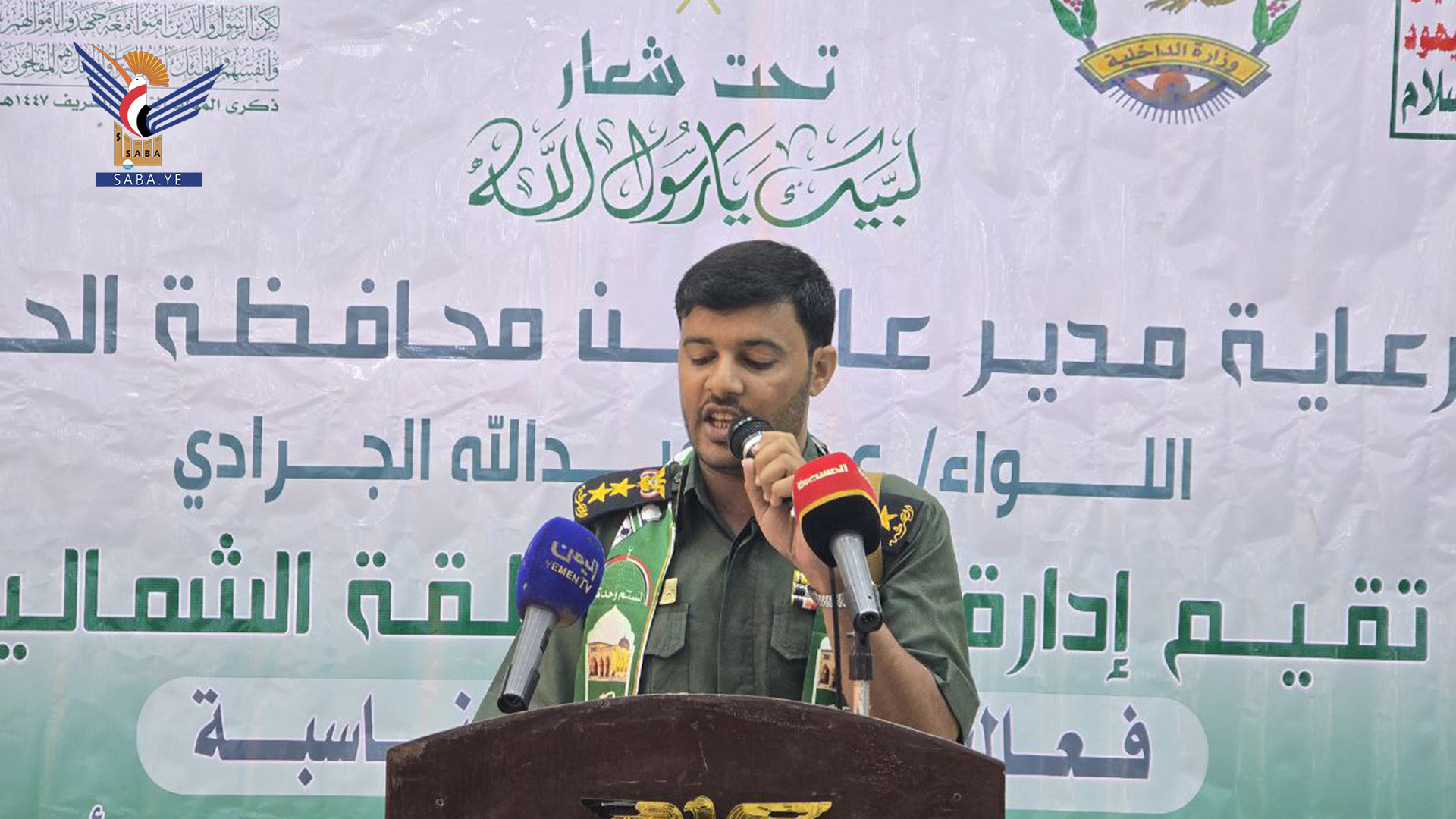 وفي الفعالية التي حضرها وكيل المحافظة المساعد لشؤون المديريات الشمالية غالب حمزة وقائد المحور الشمالي اللواء فاضل الضياني، أشار مدير أمن المديريات الشمالية العقيد صادق مصلح، إلى أن احتفاء أهل اليمن بالمولد النبوي يعزز موقفهم الثابت في مواجهة أعداء الإسلام ضمن معركة الفصل بين الحق والباطل.