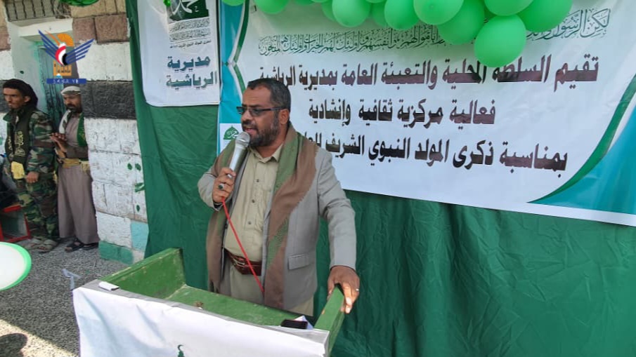 وفي الفعالية أشار مدير مديرية الرياشية عبدالرحمن الحبسي، إلى دلالات إحياء مولد سيد البشرية، محمد صلوات الله عليه وآله وسلم، في ترسيخ قيمه ومبادئه في الواقع، ومواصلة التحرك في سبيل الله لإفشال مخططات الأعداء.