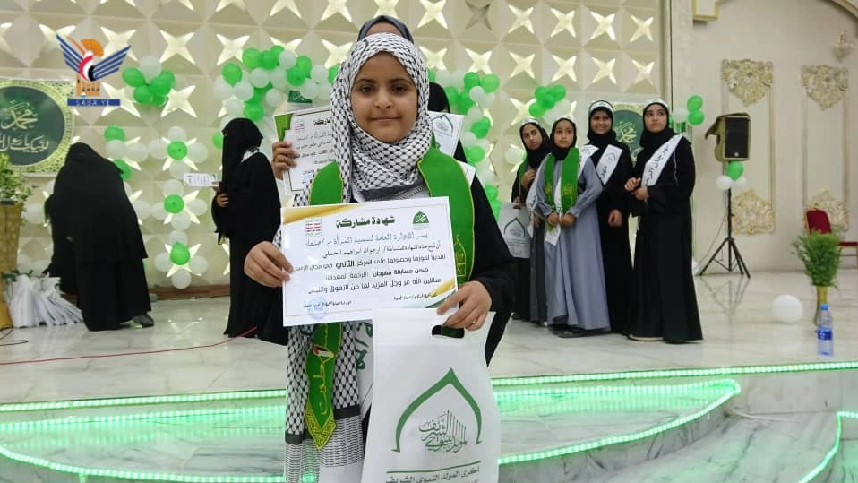 وفي الإختتام كرمت مدير عام تنمية المرأة أمة الله المحطوري الفائزات في كافة المسابقات التي شهدها المهرجان، مؤكدة أن هذه الأنشطة التربوية تجسد الولاء لله ولرسوله الكريم ، وتعرف الأجيال بشخصية نبيهم وصفاته الحميدة.