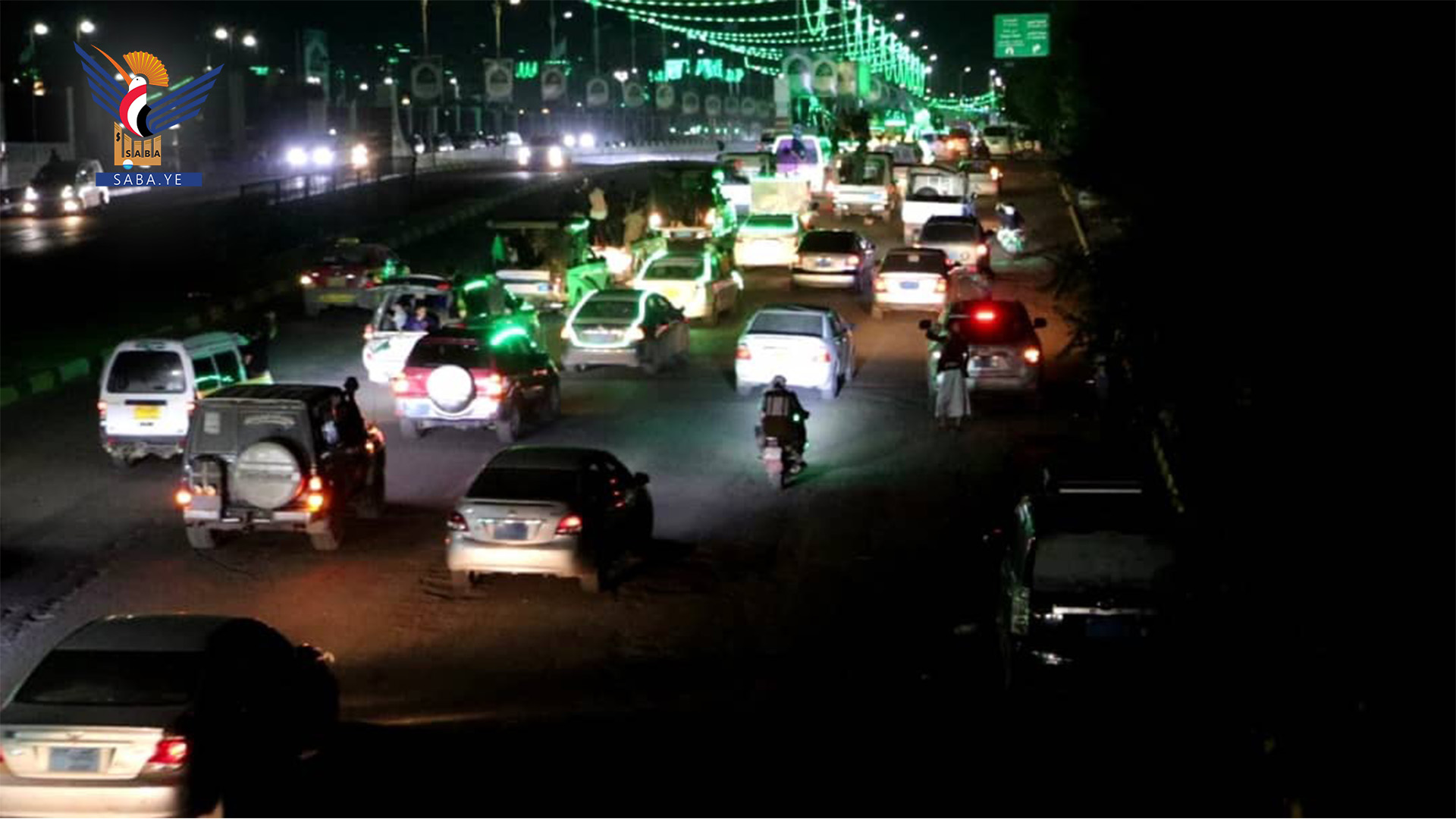 شاركت في المسيرة الضوئية مئات السيارات المزينة بالأنوار المحمدية، والتي انطلقت من شارع الأربعين وجابت عدد من شوارع مديرية آزال وصولاً إلى ميدان السبعين.