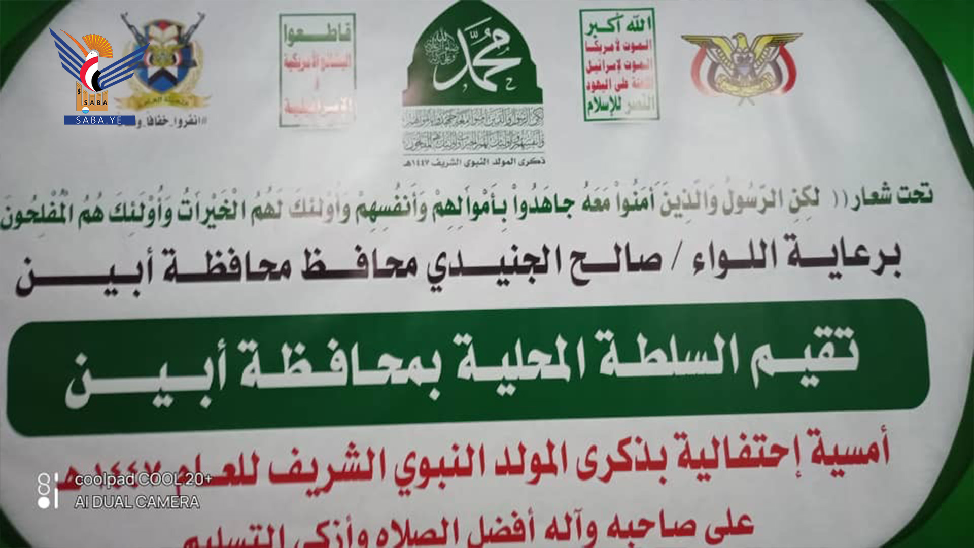 نظمت السلطة المحلية في محافظة أبين أمسية ثقافية بذكرى المولد النبوي الشريف على صاحبها وآله أفضل الصلاة وأتم التسليم .