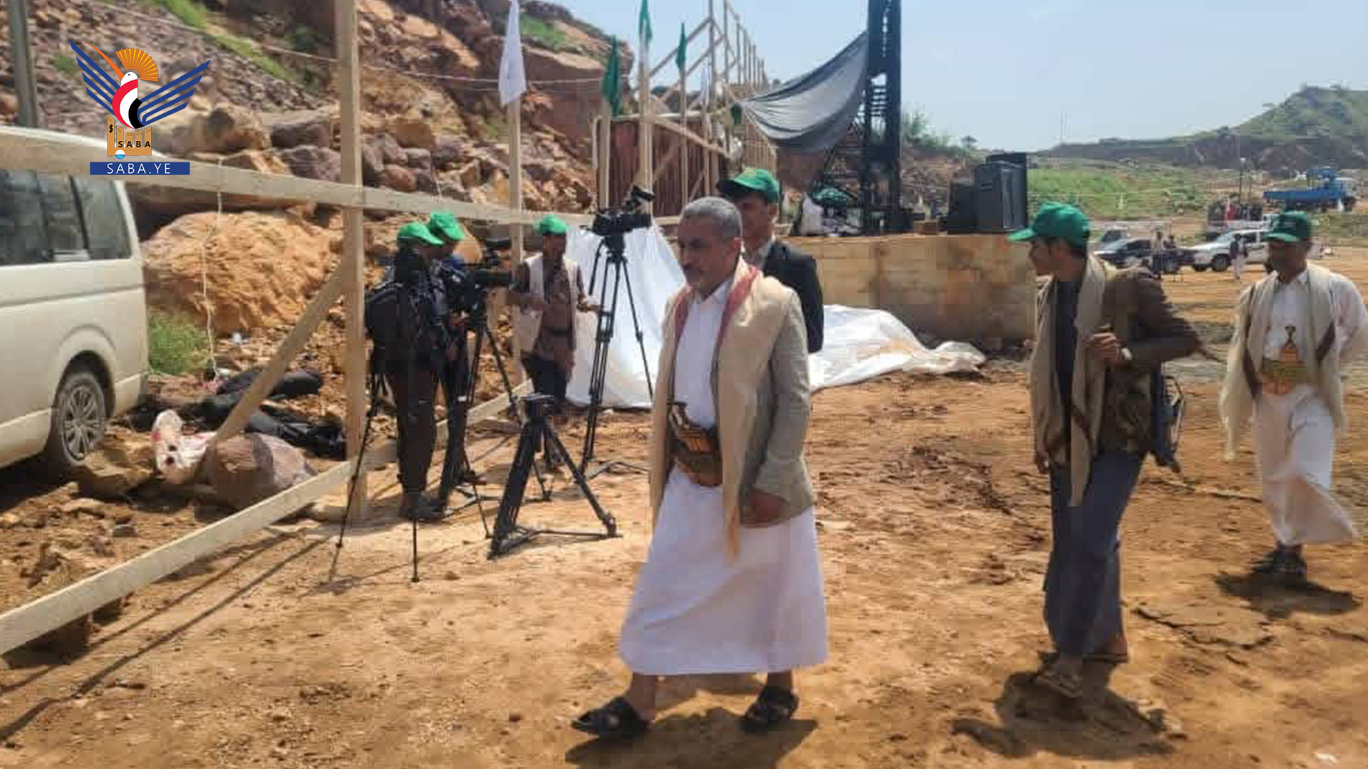 وخلال الزيارة التفقدية، استمع الدكتور الزيكم، ومعه وكلاء المحافظة أحمد القطمة، وحسين عركاض، وعبدالسلام الذماري، ومسؤول الساحات إبراهيم الناصر، ورئيس عمليات المحافظة سنان قطينة، إلى شرح من الفرق الفنية حول استكمال أعمال الإنارة، وتركيب أعمدة الكهرباء، وتجهيز حُفَر موانع الصواعق لحماية الشاشة الرئيسية، إضافة إلى تسوية أرضية الساحة بما يضمن جاهزيتها الكاملة لاستقبال الحشود.