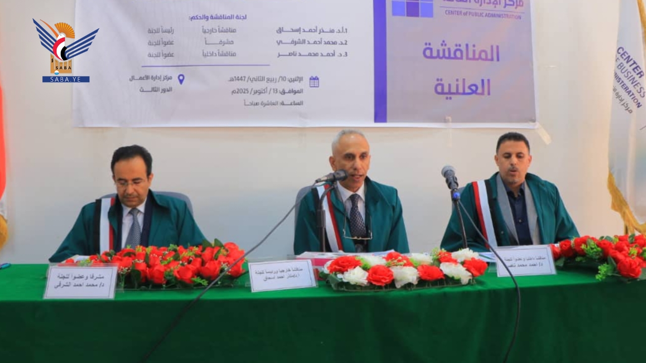 وأشادت لجنة المناقشة والحُكم برئاسة الدكتور منذر إسحاق وعضوية الدكتور محمد الشرفي والدكتور أحمد محمد ناصر بمضمون الدراسة والنتائج التي توصل إليها الباحث.