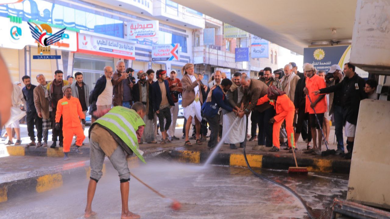 واطلع أمين العاصمة ومعه مديرا مديريتي الوحدة سامي حميد ومعين عبدالملك الرضي، على أعمال المبادرة التي انطلقت من تحت جسر غزة بشارع الزبيري واستهدفت تنظيف وتحسين الأرصفة وتشجيرها ورفع المظاهر العشوائية والمشوهة، وتوعية أصحاب المحال بالاهتمام بنظافة الأرصفة والشوارع والتشجير.