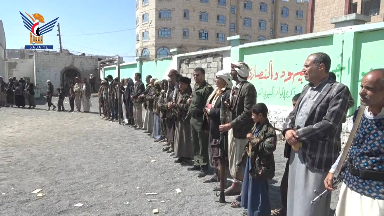 نظم أبناء مدينة رداع بمحافظة البيضاء اليوم، وقفة مسلحة تأكيداً على استمرار النفير والجهوزية العالية، وتجديدًا للعهد بالوفاء للقائد الجهادي الشهيد الفريق الركن محمد الغماري.