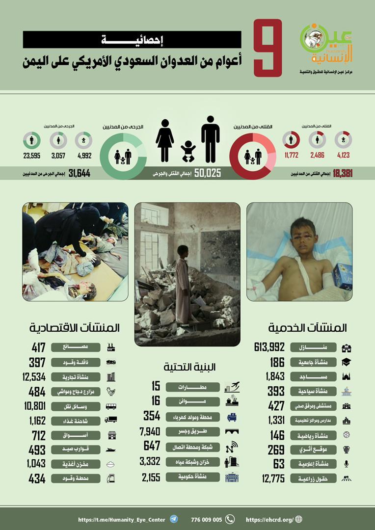 وشنّت السعودية عبر تحالف عسكري عربي غربي مكوَّن من أكثر من 17 دولة عربية وأجنبية، وبأكثر من 274 غارة وقصفًا جويًا، بدعم من الولايات المتحدة وبريطانيا وكيان "إسرائيل"، عدوانًا عسكريًا لقتل اليمنيين الأبرياء في مناطق سيطرة حكومة صنعاء في 26 مارس 2015، في انتهاك سافر للقوانين والمواثيق الدولية والأعراف الإنسانية، وأفظع جرائم البشرية.