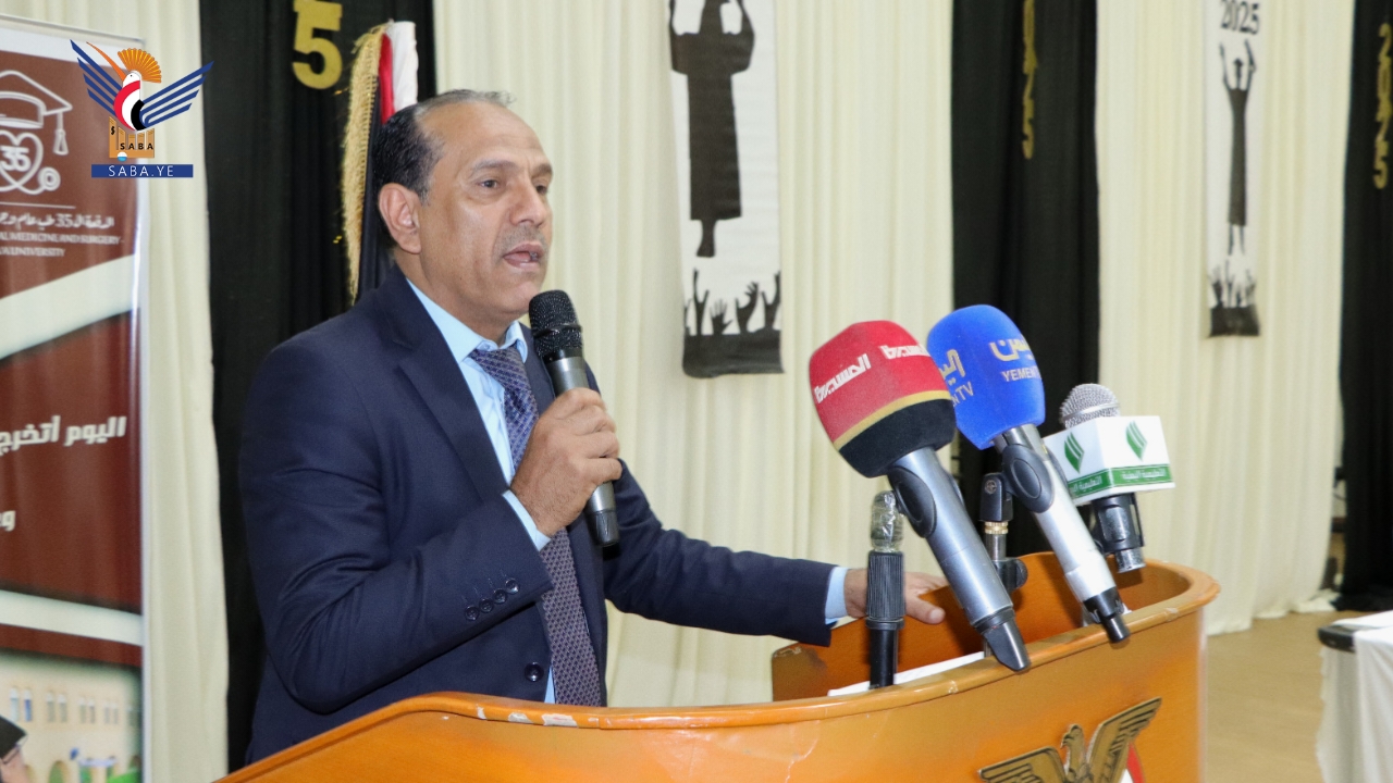 وأشار إلى أن عددًا كبيرًا من خريجي كلية الطب بجامعة صنعاء يمارسون اليوم مهنتهم في دول عربية وأجنبية، ويثبتون حضورًا مهنيًا متقدمًا، منوهًا أن "هذه الجامعة ليست مجرد مؤسسة تعليمية، بل هي صرح وطني وإنساني حمل على عاتقه مسؤولية إعداد الطبيب القادر على خدمة وصون حياة الإنسان".
