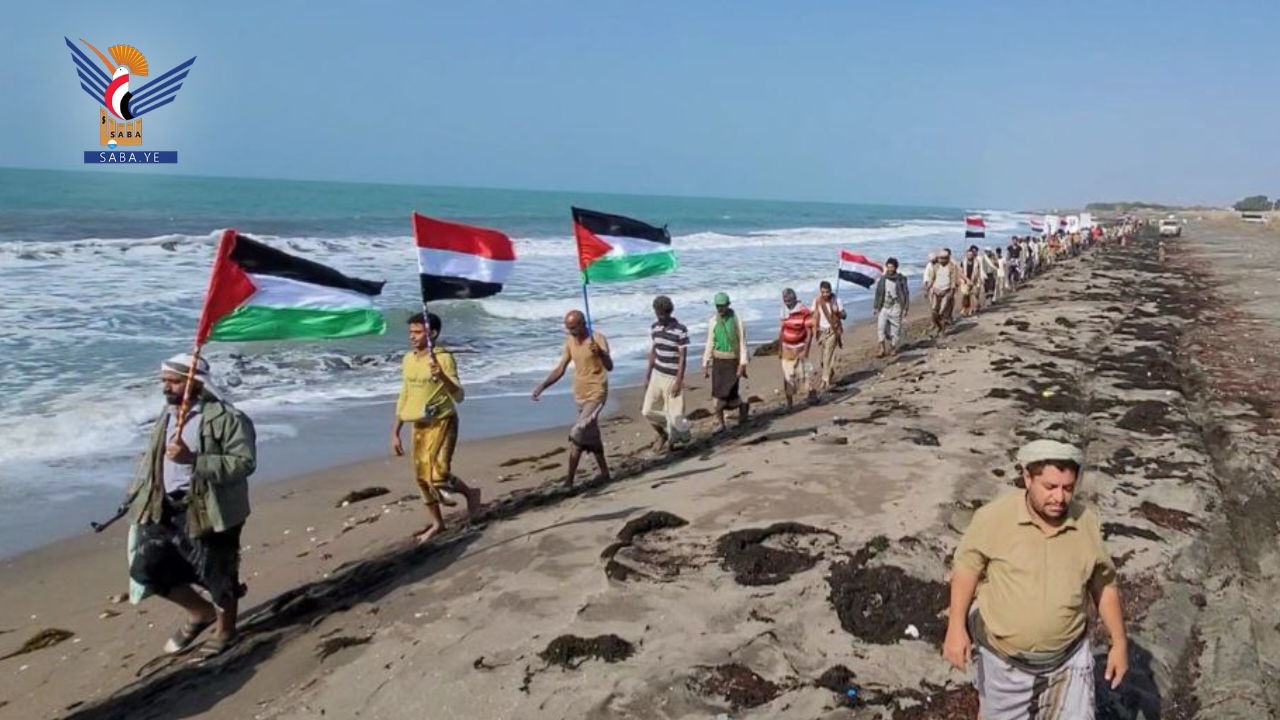 انطلق المسير، الذي نفذه 250 من الملتحقين بدورات التدريب والتأهيل العسكري، على امتداد الساحل البحري بمناسبة اختتام مشاركتهم في الدورة، مؤكدين التفويض للقيادة وتنفيذ كل الخيارات لنصرة فلسطين والجهاد في سبيل الله، والتصدي لأي محاولات من الغزاة المحتلين والمتربصين باليمن والأمة.