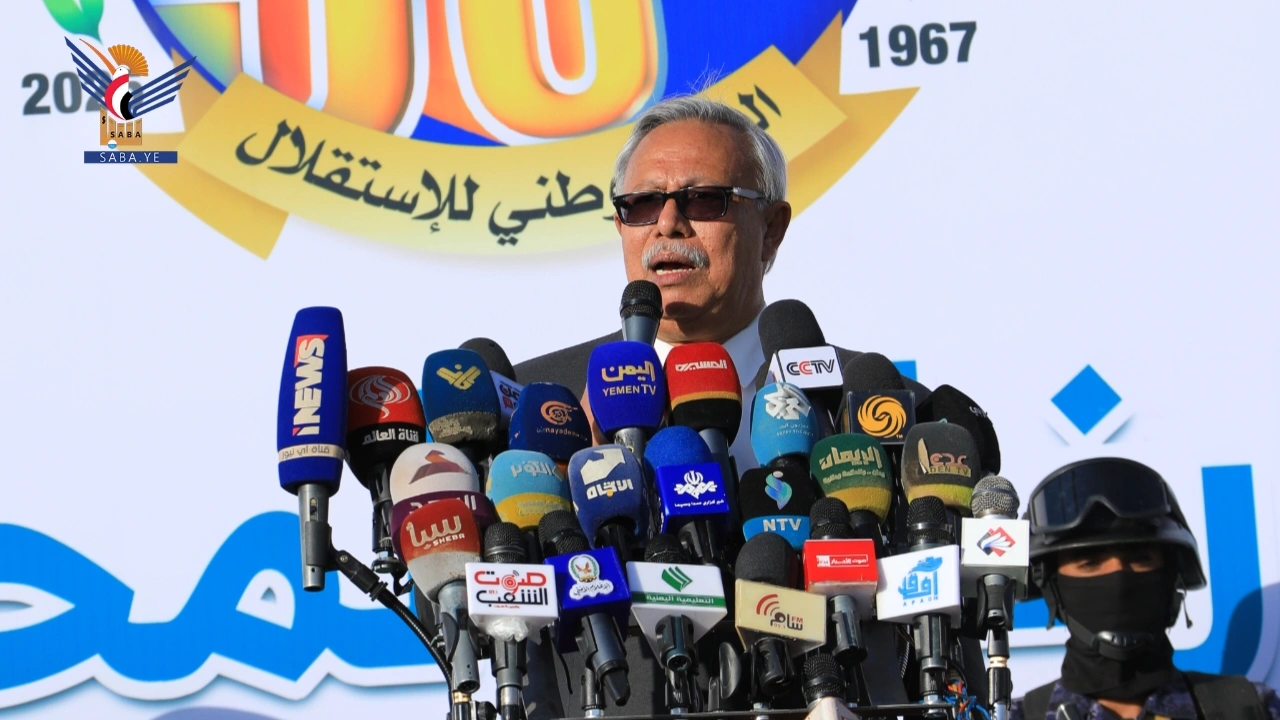 وأضاف "إنها لحظات تاريخية مهيبة أن يحتفل اليمن من ميدان السبعين بذكرى طرد آخر جندي بريطاني من أرض اليمن قبل 58 عاما، ولكنه في ذات الوقت يحتفل بالانتصار الكبير الذي حققه أهلنا في قطاع غزة بصمودهم وثباتهم برغم كل الجراحات والخسائر".